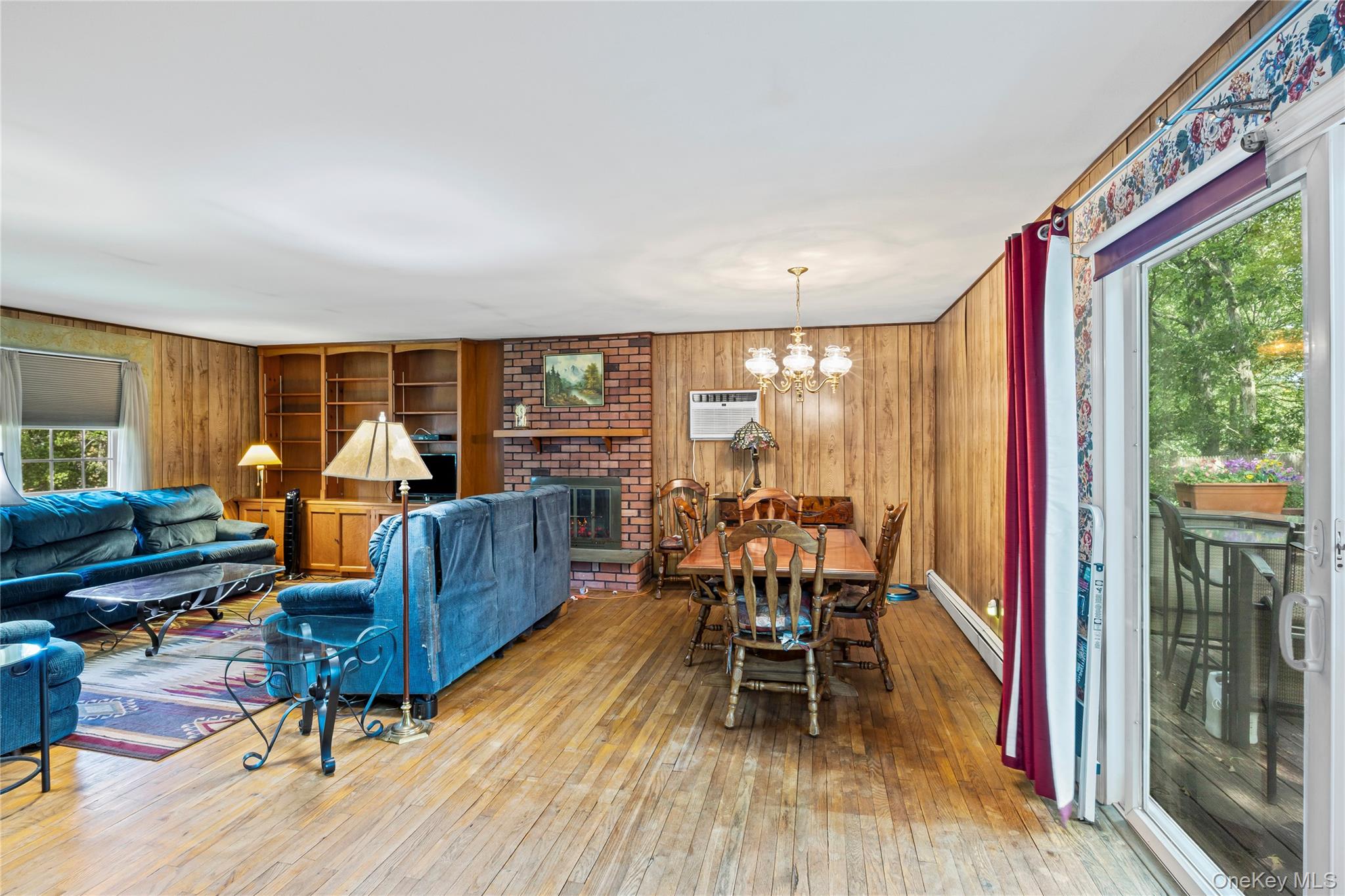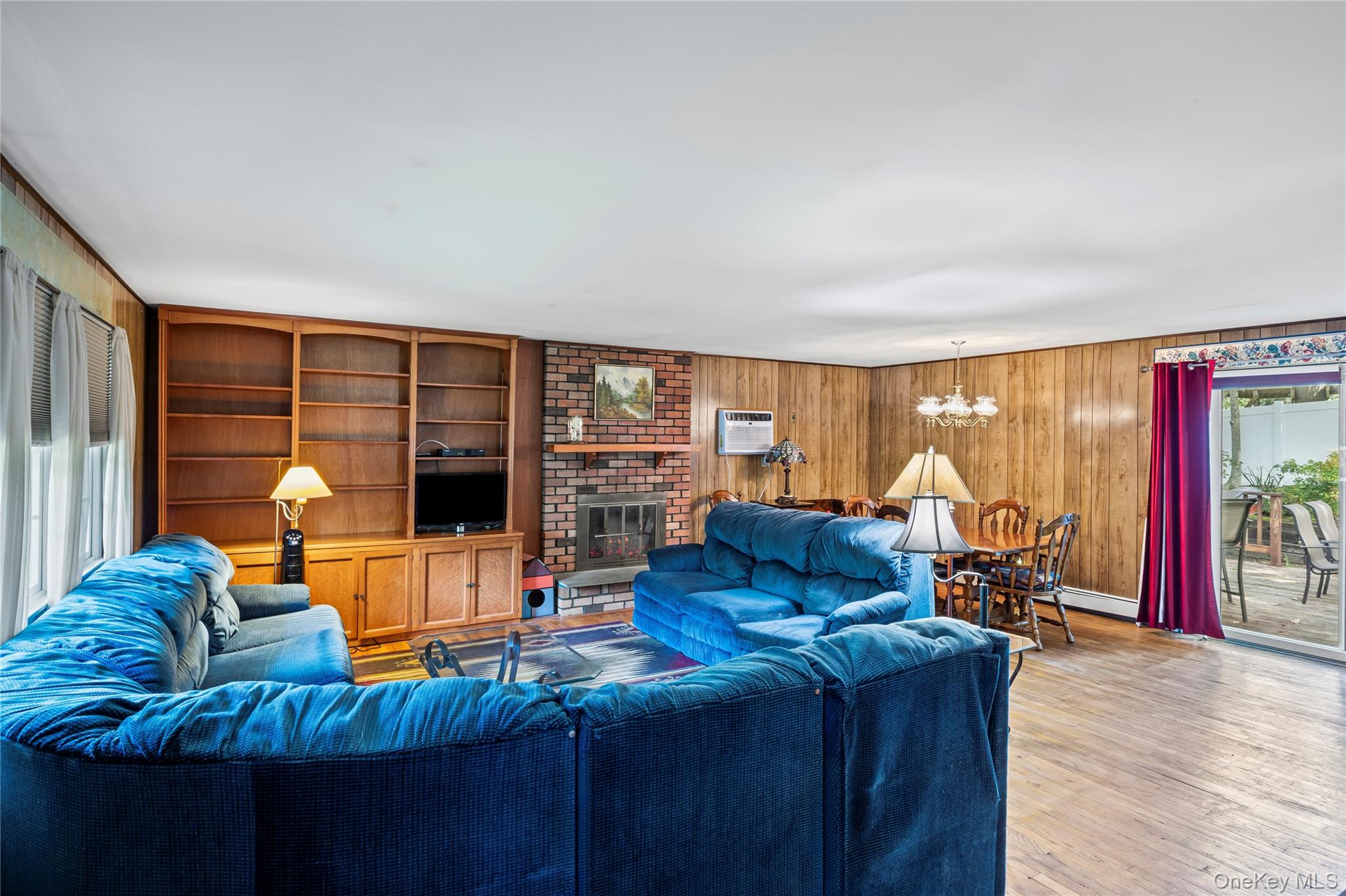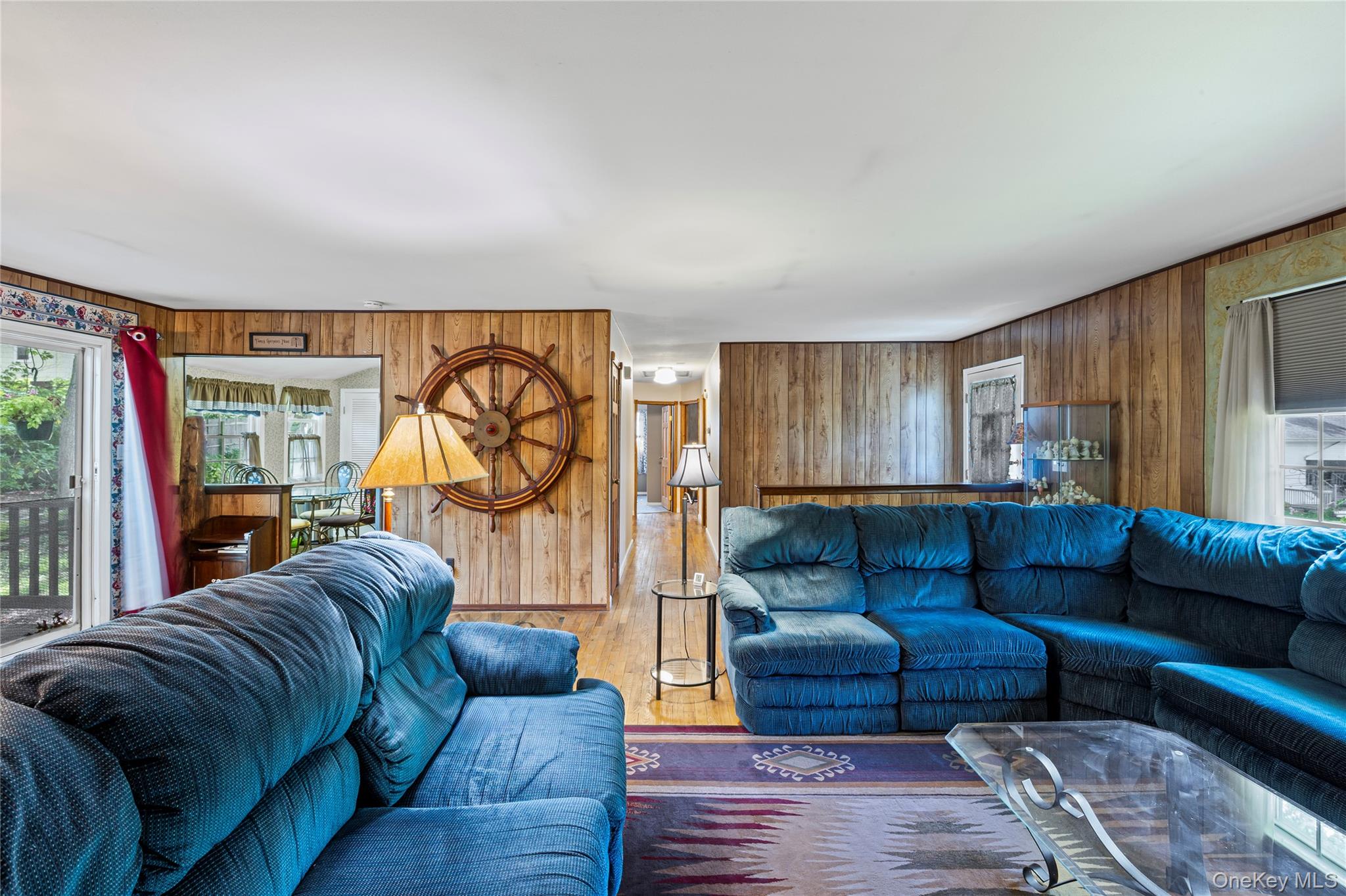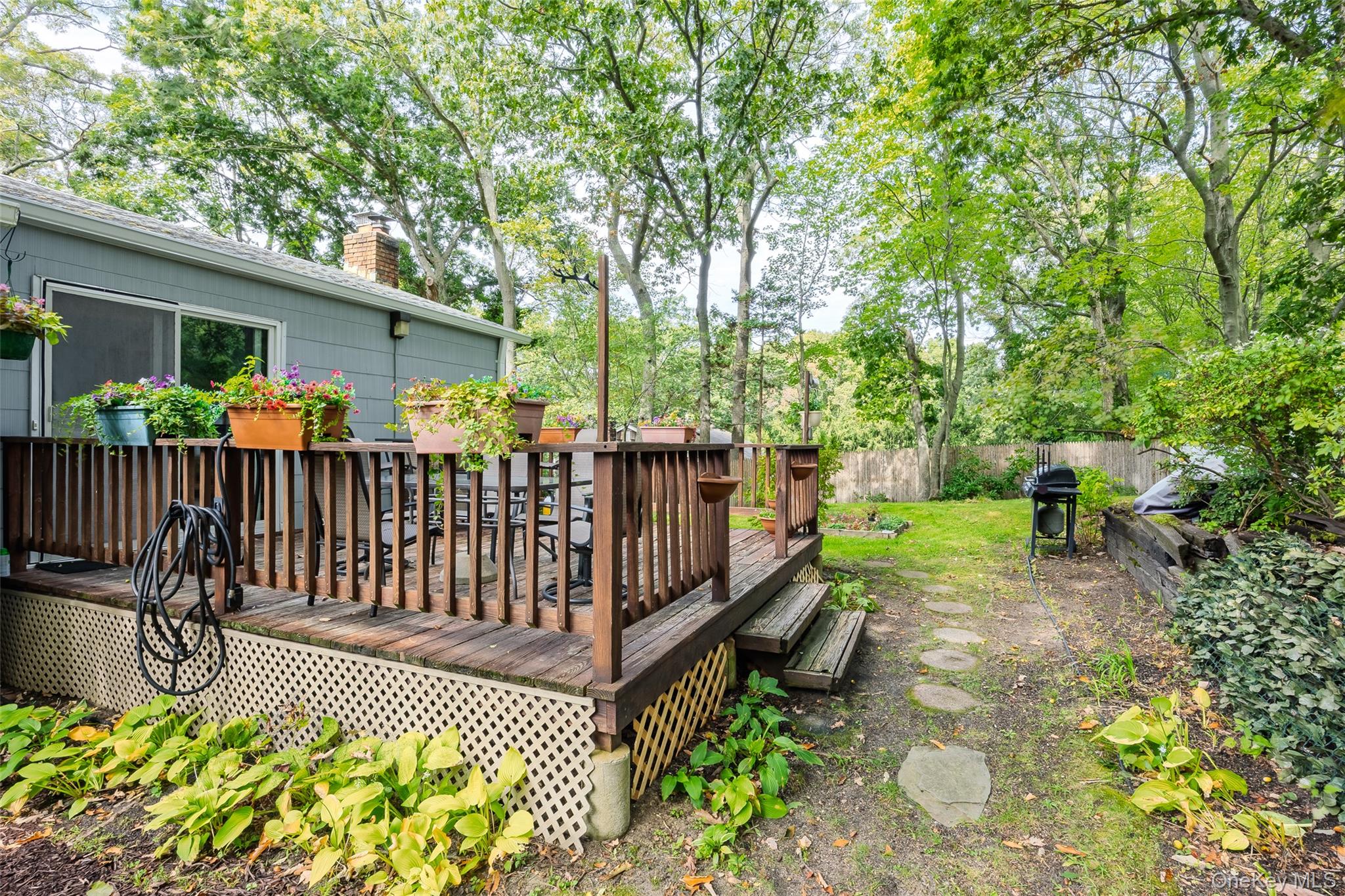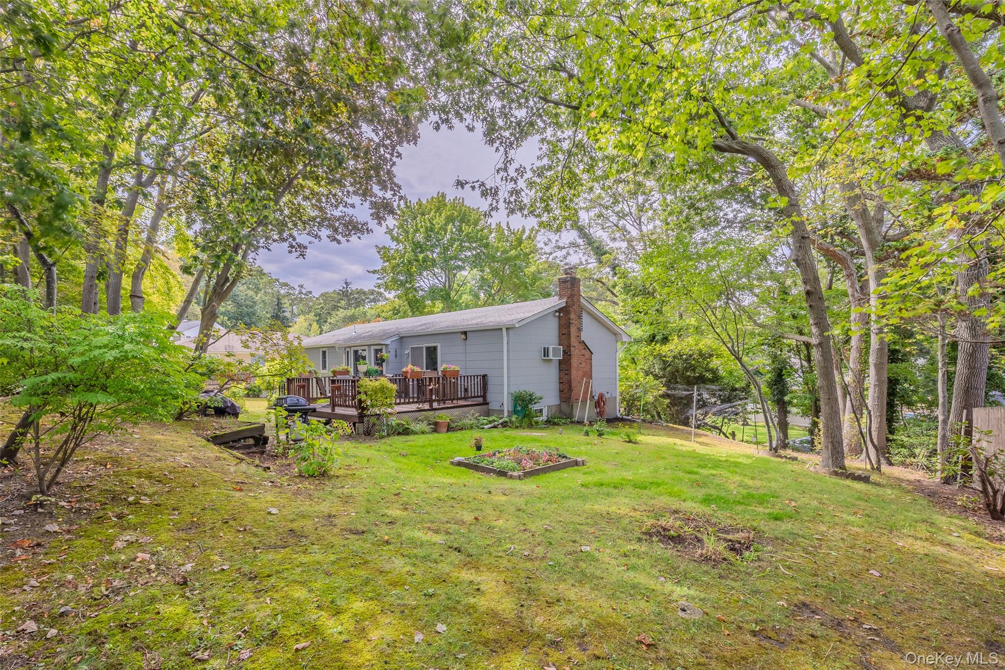 Oversized 3 Bedroom Ranch in Miller Place Schools with a full Basement and 2 car garage! Home is larger then the average ranch including the Living room and Dining Room with Wood burning Fireplace, Maple Cabinets in the eat in kitchen, a Primary Bedroom with Primary Full Bath, 2 Additional Bedrooms and a 2nd Full Bath. The home has wood floors throughout. There is a finished basement and a 2 car garage underneath the entire home. Outside the Deck is a gift and the inground sprinklers are a must have.