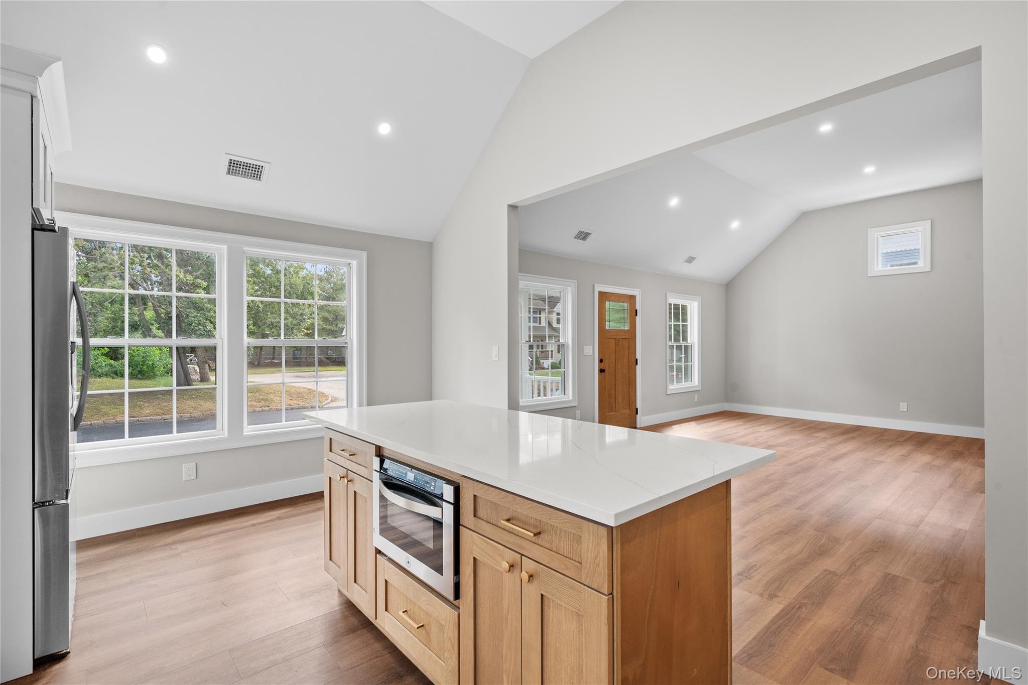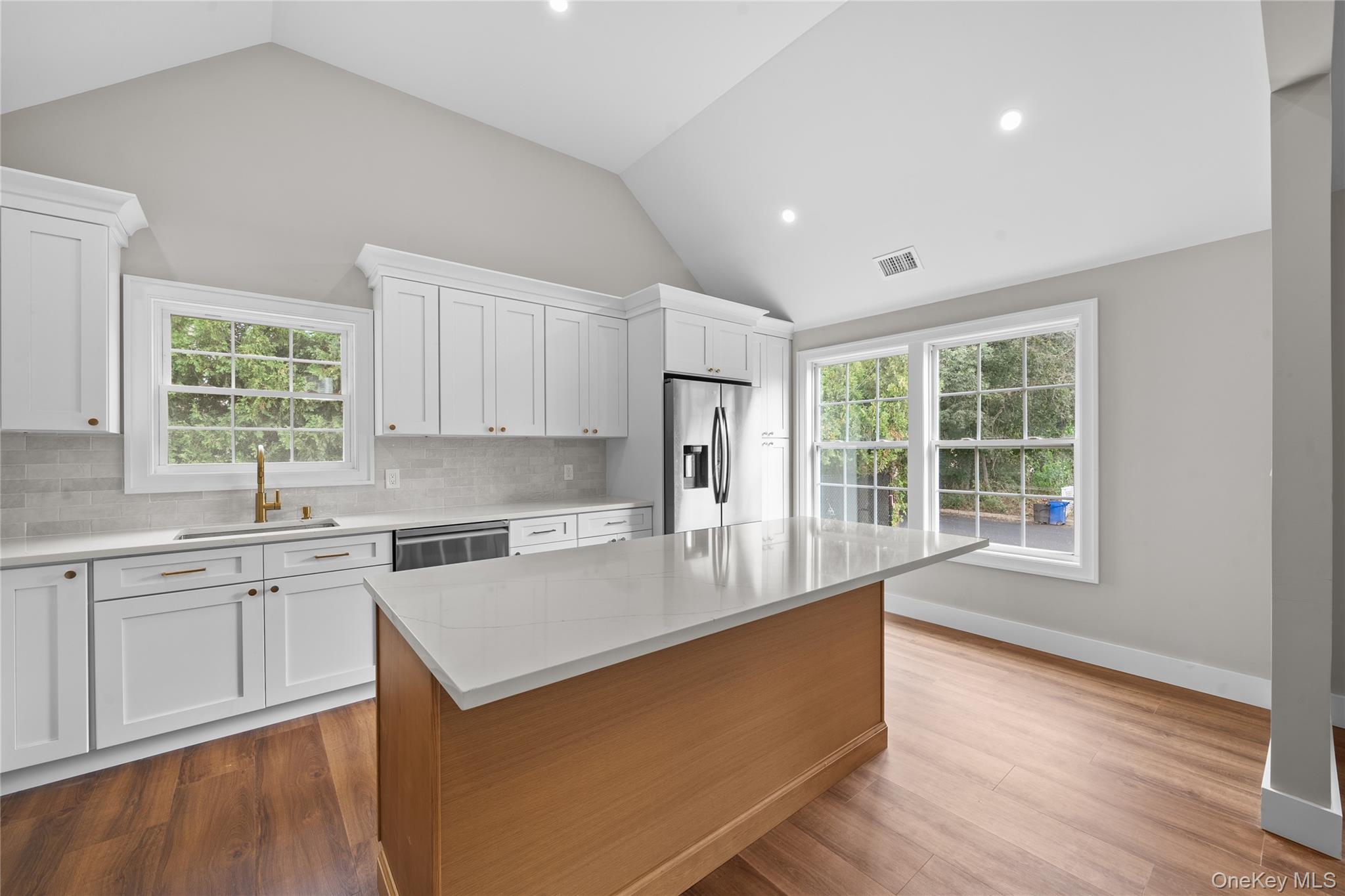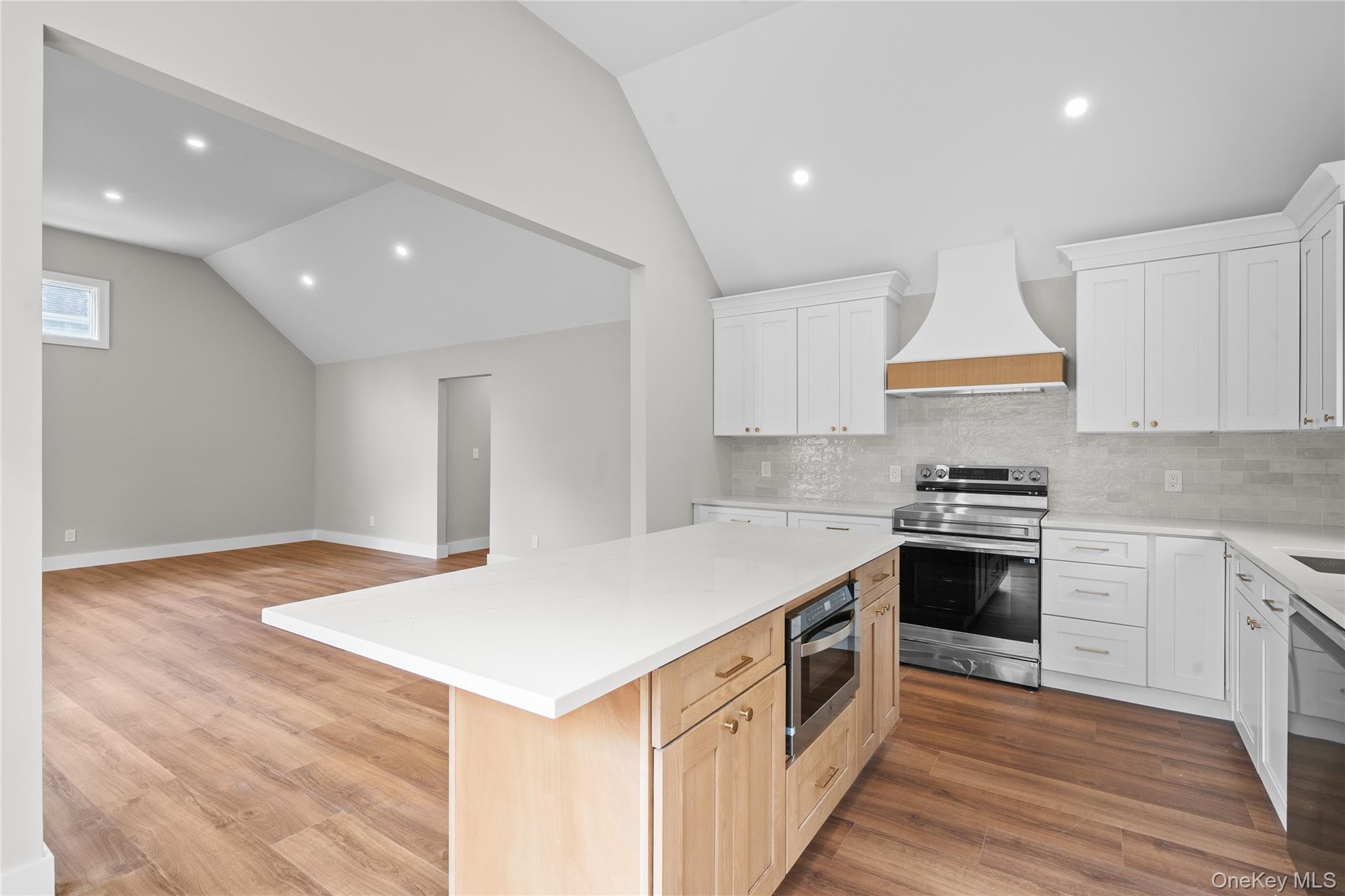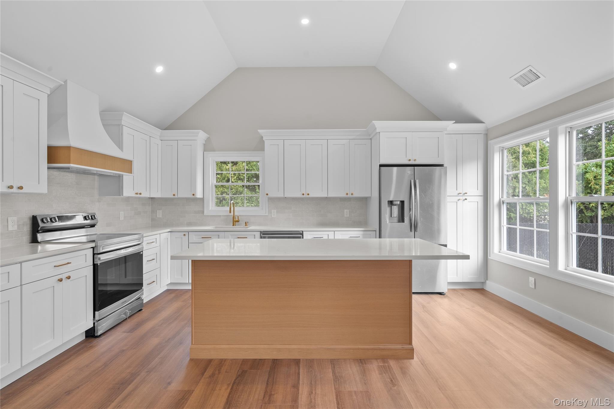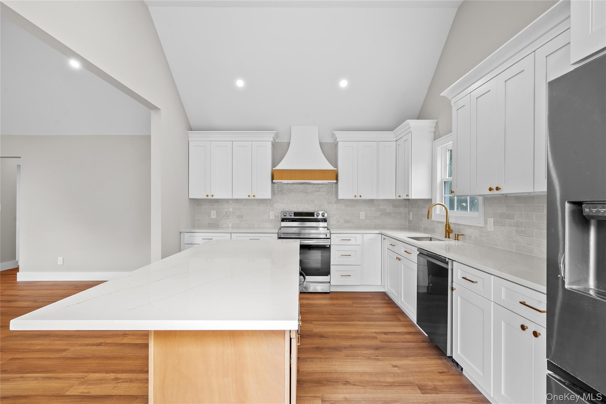 Welcome to this beautifully crafted 3-bedroom, 2-bathroom home offering modern design, quality finishes, and an open-concept layout perfect for today’s lifestyle. Step inside and you’ll immediately notice the bright and airy living space with vaulted ceilings, recessed lighting, and wide-plank flooring throughout. The chef’s kitchen is a showstopper, featuring custom white cabinetry, quartz countertops, a large center island, stainless steel appliances, and stylish gold accents. The primary suite offers comfort and privacy with a spacious en-suite bath as well as two other bedrooms which makes plenty of space for for guests. Enjoy seamless indoor-outdoor living with a beautifully landscaped yard—ideal for entertaining, relaxing, or play. With all-new systems, energy-efficient construction, and thoughtful design, this home is truly move-in ready. Located in the heart of Nesconset, you’ll love the convenience to schools, shopping, dining, parks, and major highways, making this home a perfect blend of comfort and convenience.