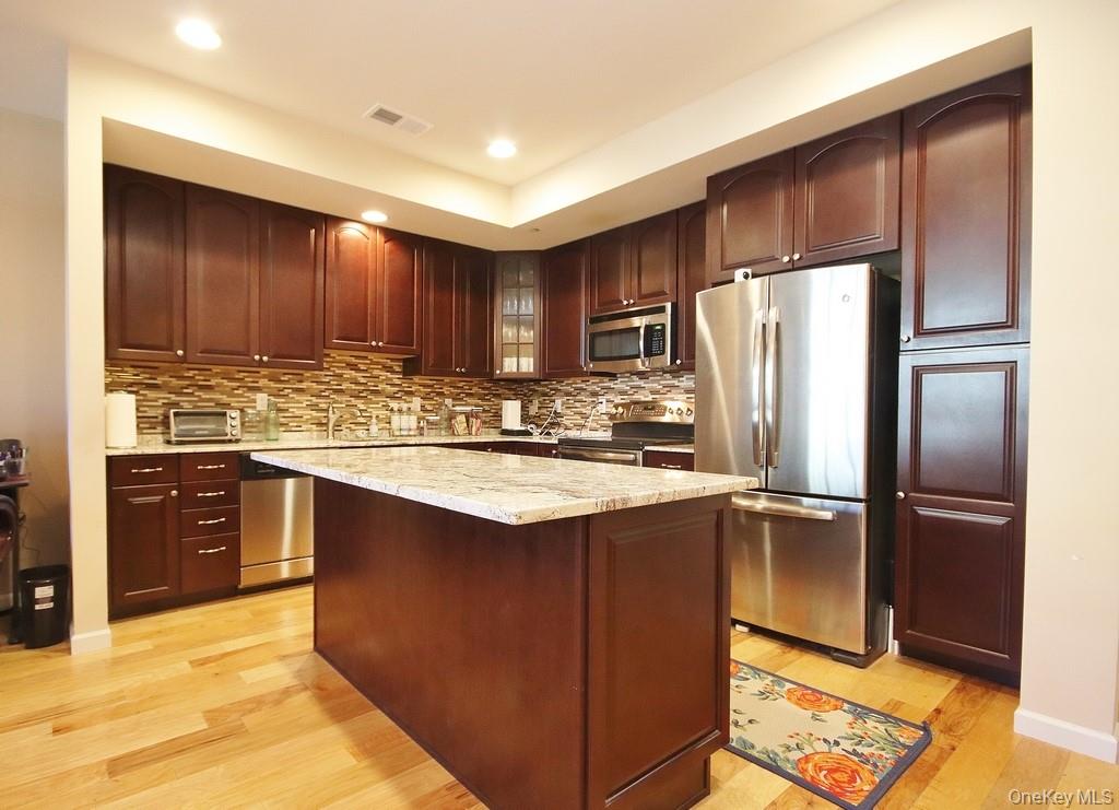 Beautiful walk in garden unit, is an absolute pleasure to show! Tastefully finished with lovely wood cabinets and flooring, upgraded granite stone on the center Island and the kitchen counters! Nestled between units, this one benefits from the heat and cool comfort of the summer months! This unit has impressive low NYSEG electric and gas bills throughout the year. This is a true over 55 community and if you purchase as a rental, Renters are NOT permitted to have pets, Plan ahead, this beauty will be available to close mid/end December, 2025.