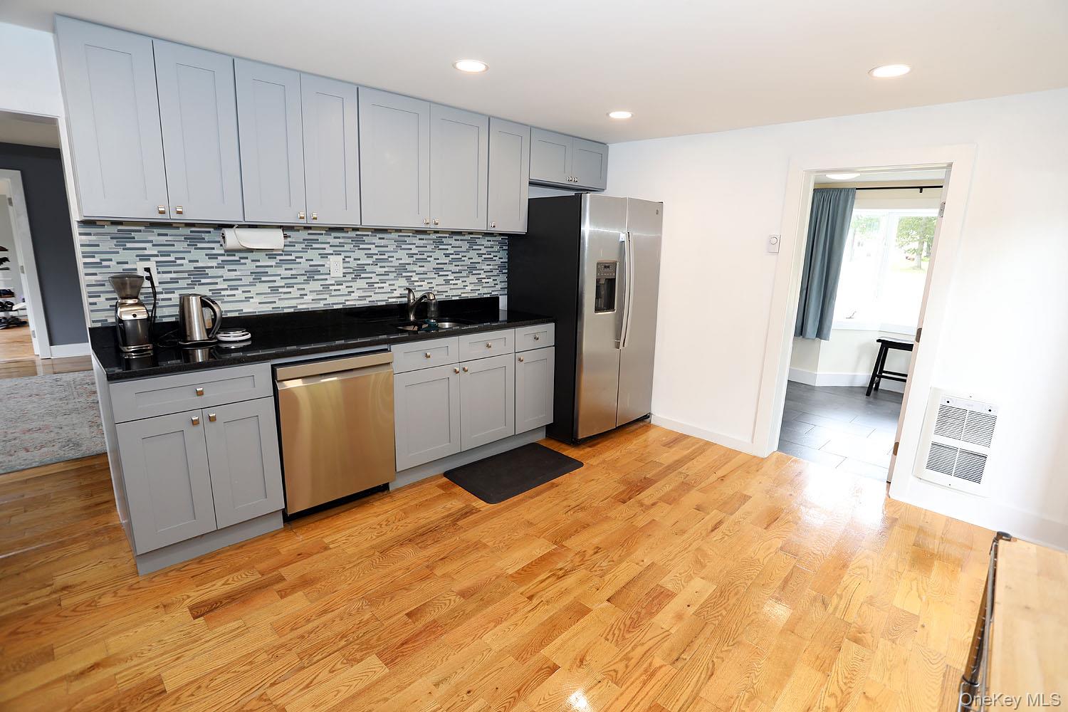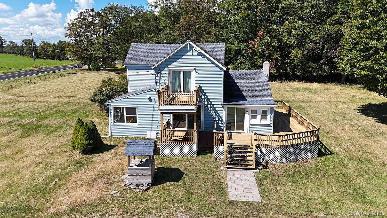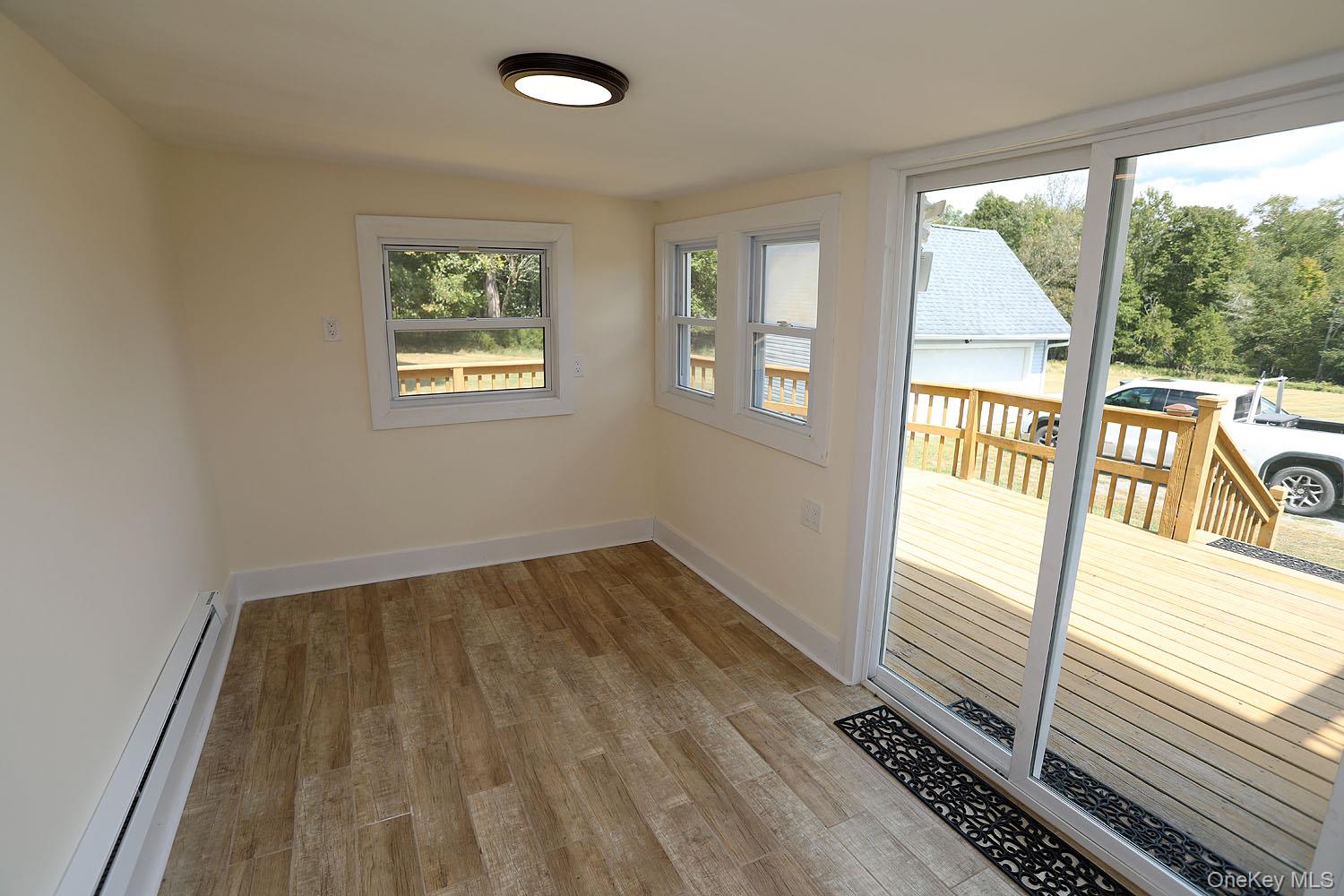 Check out this stylish Catskills retreat featuring 3 bedrooms and 2 full baths! This chic two-level home has been completely remodeled and sits on about 3.5 level acres with a 2-car garage. You’ll love its gleaming wood floors and massive brick fireplace in the LR. The main living area has a bright, sunny entry, updated spacious kitchen with granite counters and SS appliances, with a convenient laundry area just off it. A wrap-around deck makes outdoor entertaining a breeze; just step through the sliding doors from kitchen or dining room. The dining room has sliders which open to the covered deck for al fresco meals. You’ll continue into the family room (or use this as a main bedroom on the first floor!) with plenty of light and terrific views. Then as you step into the living room, you’ll see the focal point is the gorgeous brick fireplace! Don’t forget the full bath on this level: the soaking tub will make you want to immerse yourself in bubbles and forget the world! Moving upstairs, there are three bedrooms and another full bath-- one of which opens to its own private balcony. Don’t forget the basement: has its own entrance and has been fully moisture-proofed; great for storage. Outside, find a nice level lawn for gardening, evening firepits, or even add a pool! The 2-car garage is a nice bonus. This nearly 2000-square foot residence offers the Catskills weekend lifestyle you’ve been searching for! You’ll love its central location-- just 10 minutes to Callicoon and the Delaware River with the popular Sunday Farmers Market, eateries, theater, and pickleball. And only 15 minutes to Narrowsburg with its brewery, art scene and terrific restaurants! Bethel Woods Center for the Arts is just a short drive for concerts and Harvest Markets. Less than 2 hours from the GWB, it’s a totally manageable day trip for a visit, and once you get here you may not want to leave!