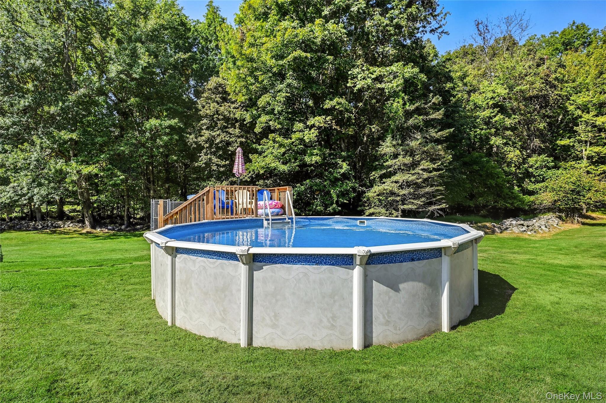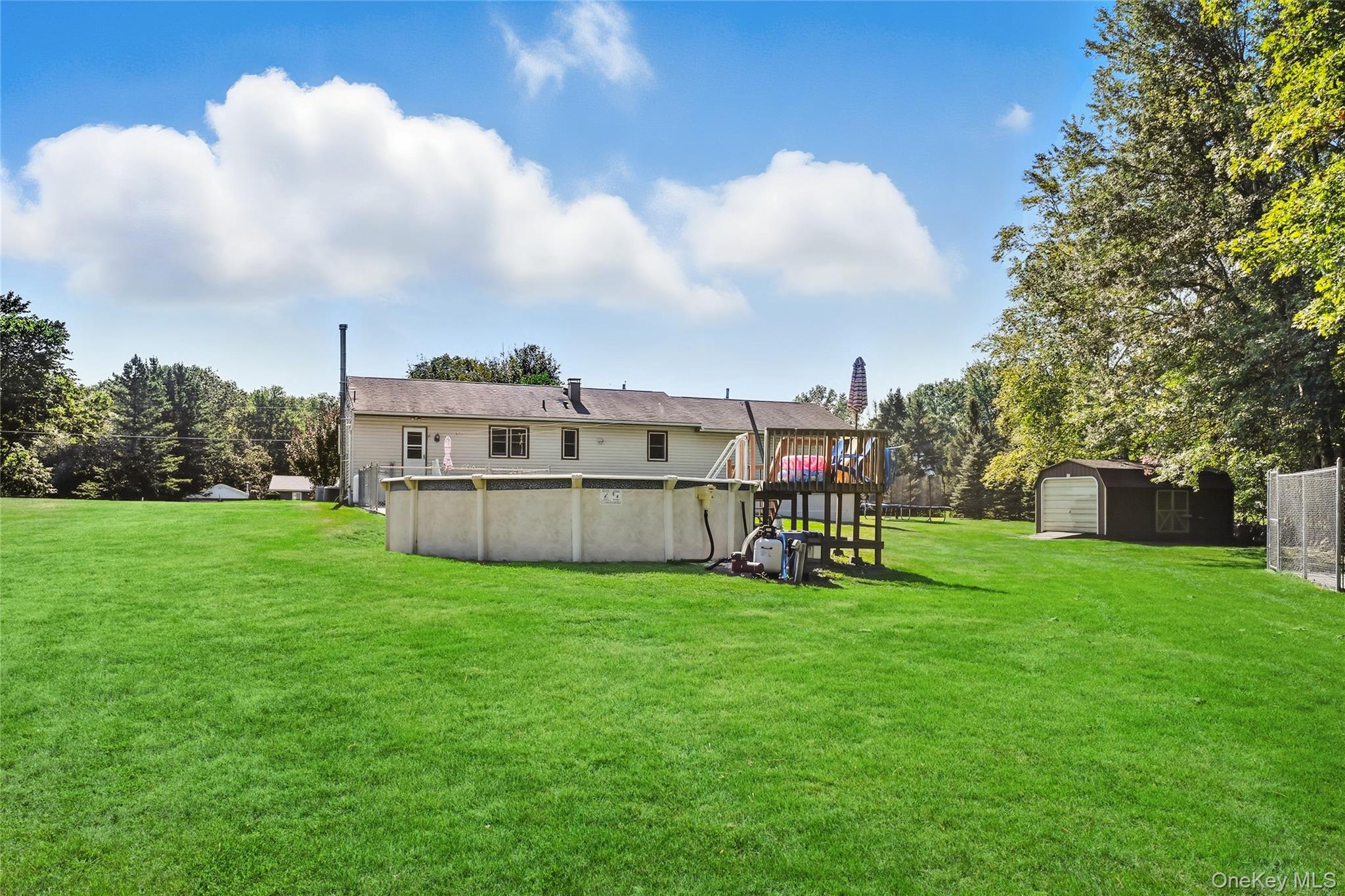 Welcome to this charming ranch-style home set on 4.8 acres, consisting of two lots (2.3 and 2.5 acres), offering comfort, convenience, and room to enjoy both inside and out. This 3-bedroom, 1.5-bath home features a bright and inviting eat-in kitchen with granite countertops, perfect for casual meals or gatherings. This home comes equipped with central air conditioning and a whole-house generator for peace of mind year-round. Spacious basement for recreation and entertainment, or step outside to enjoy the fenced patio and above-ground pool, ideal for summer fun. A 2-car garage provides ample storage and parking, while the expansive property offers plenty of space for outdoor activities, gardening, or simply enjoying the scenic surroundings.