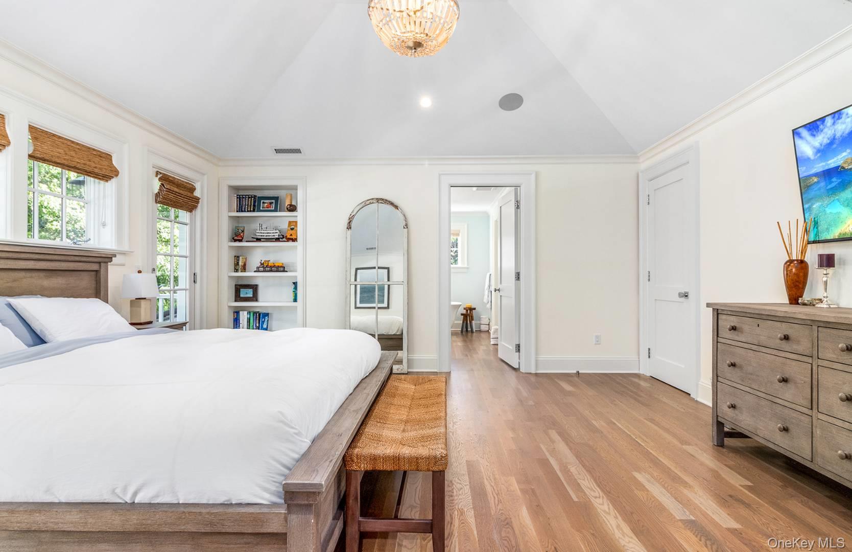This 6000 s/f above ground beautiful 2018 construction is located on one landscaped acre on a quiet cul-de-sac and conveniently located minutes from Southampton Village, Beaches, Southampton Recreation Center and the Peconic Bay. The first floor has a large eat-in kitchen with sub-zero/thermador appliances and a beautiful center island with French doors that lead to an outdoor partially covered patio with a wood burning fireplace. There is a bright and sunny family room with a gas fireplace, a wet bar and two sets of french doors that open to the 20 x 40 heated gunite pool with an electric cover, there is a powder room, formal dining room, and an ensuite guest bedroom as well as a mudroom located off the two-car attached garage and basketball in the driveway. The second floor offers a beautiful master suite with a large balcony and three additional ensuite guest bedrooms, in addition to a large play/game room with bunk beds. Each floor offers separate washers/dryers for your convenience. The newly finished lower level offers a large media/game room, a full gym, a generous bedroom and a full bathroom. Equipped with sonos and control 4 systems for music and lighting inside and out this beautifully decorated and comfortable home offers the perfect summer retreat.