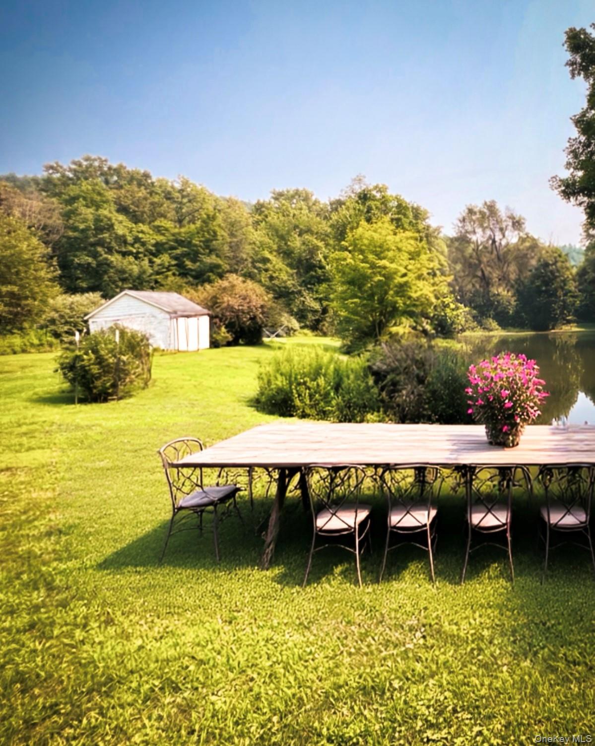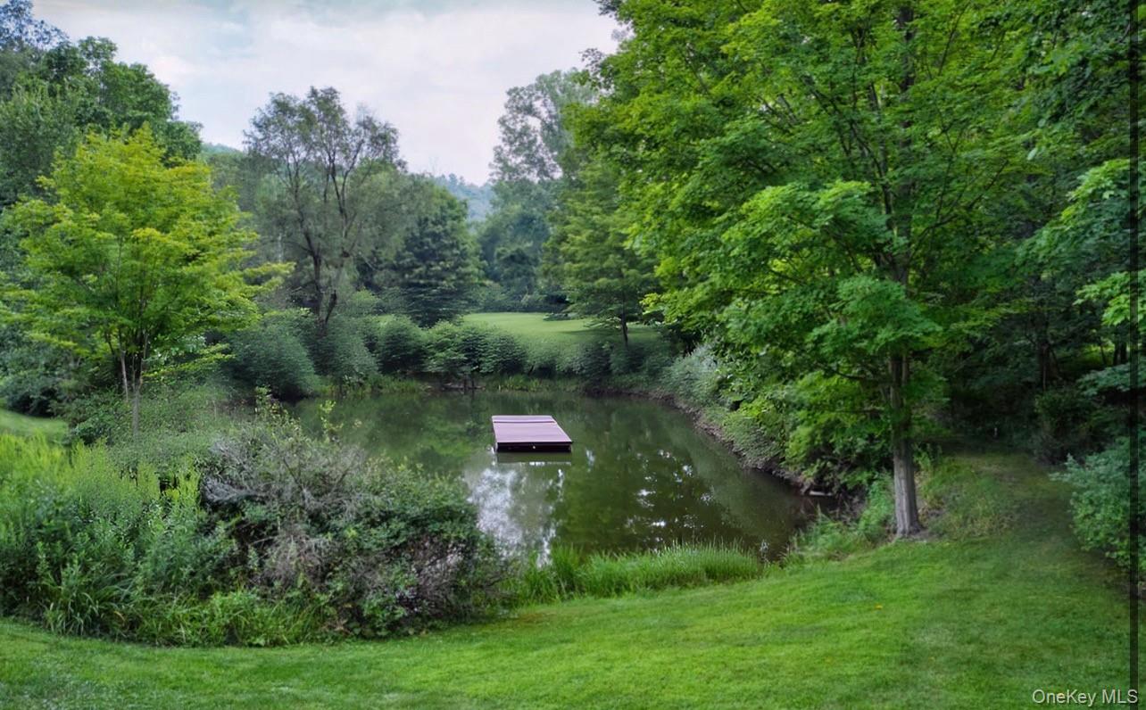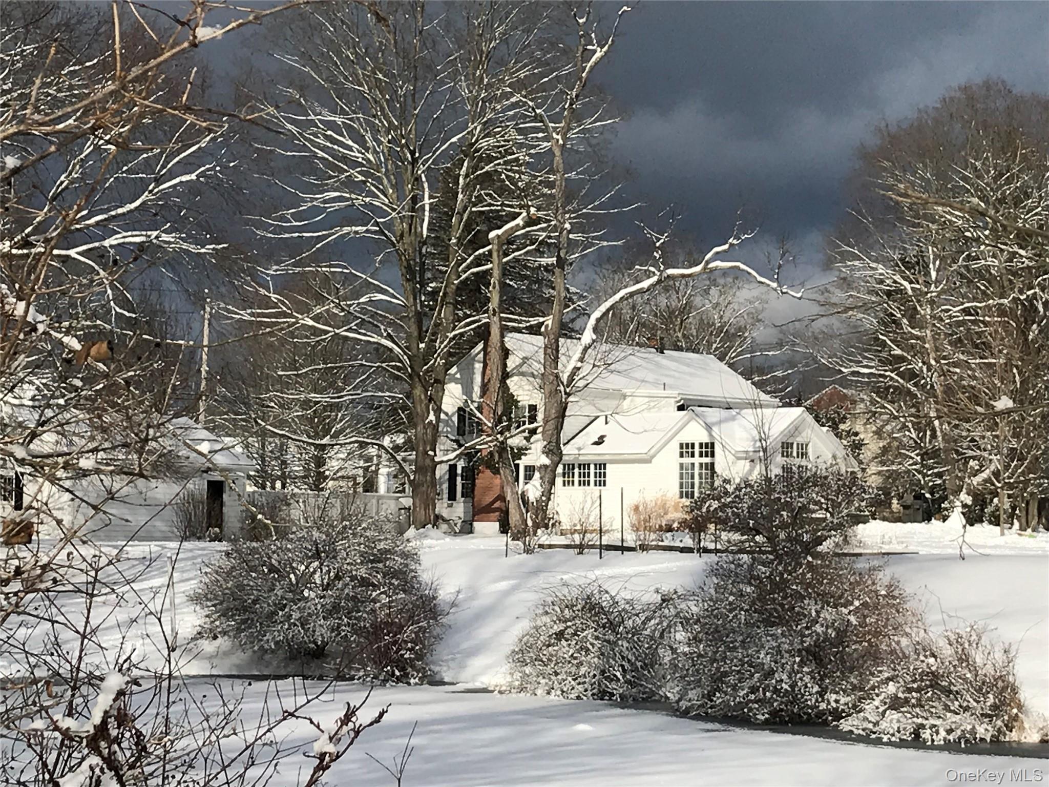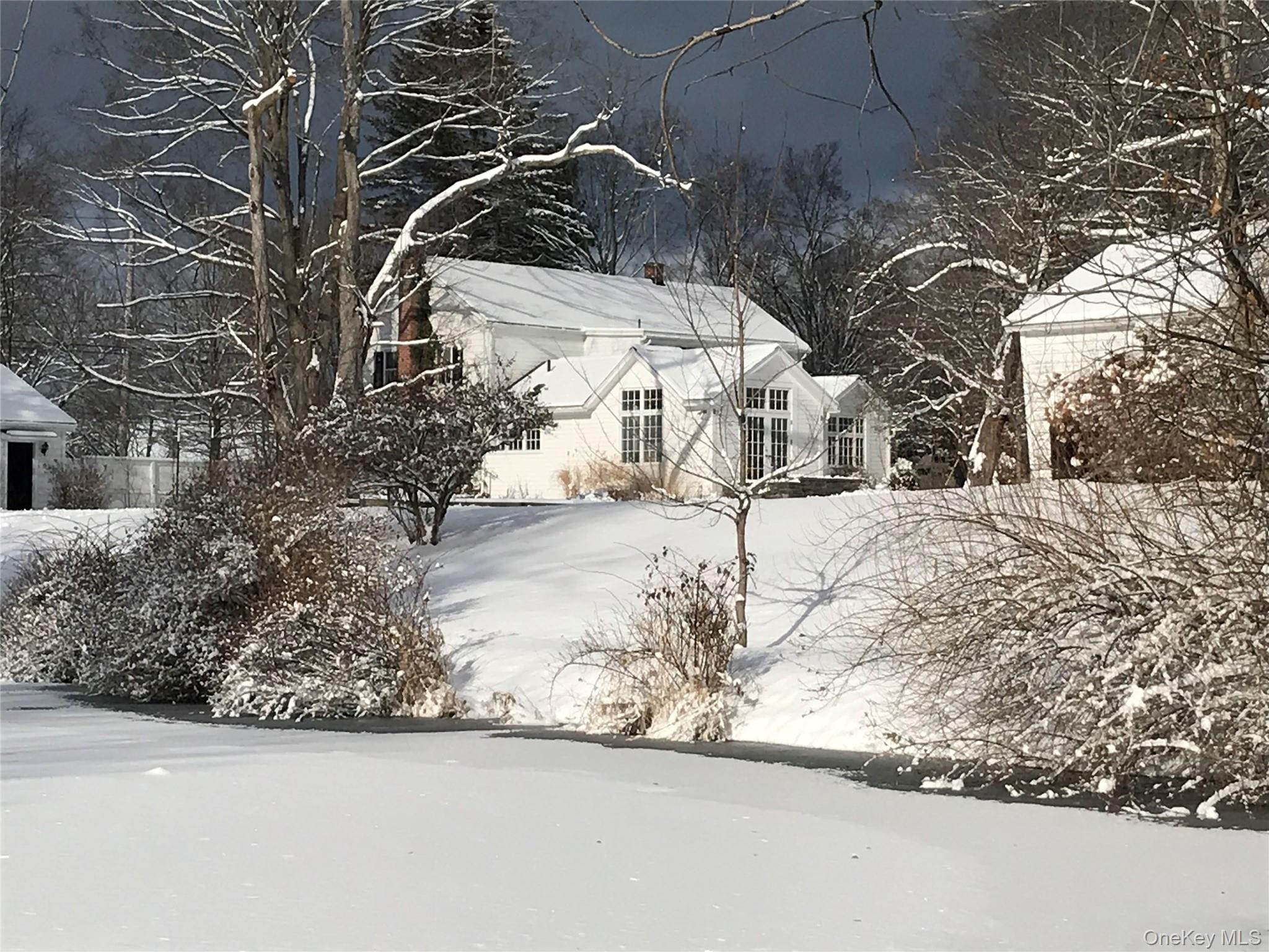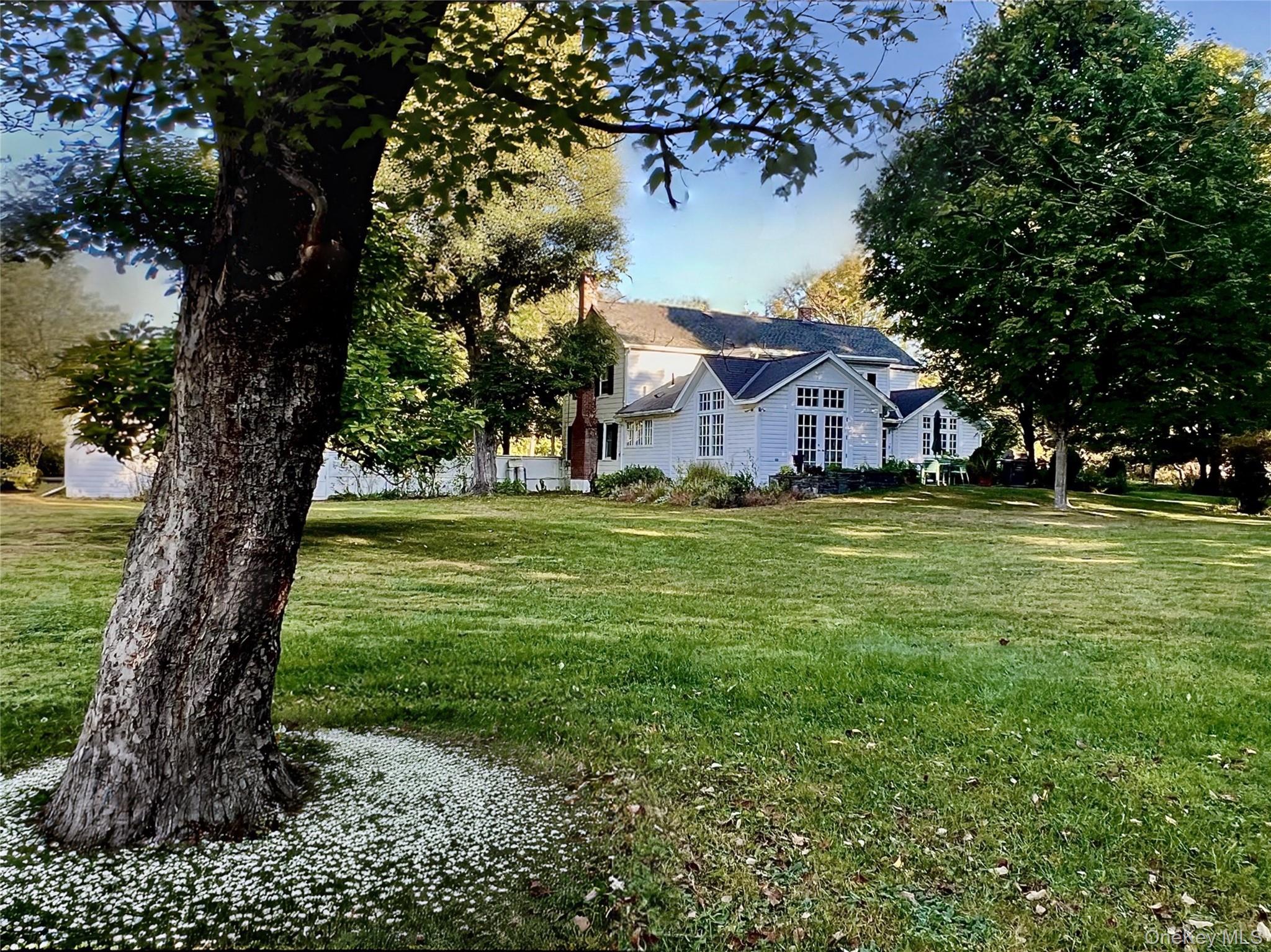 This picturesque four-bedroom, three-bath 1800’s farmhouse has been lovingly restored and thoughtfully updated, blending timeless historic farmhouse charm with modern comfort, including fiber-optic internet. Set on 18.5 acres of pure serenity, it offers a storybook setting with two meandering streams, an enchanting spring-fed pond, and a rolling lawn that opens to forests and trails. The quintessential rocking-chair porch serves as the formal front entry, and a side door that opens into a traditional ’boot room’, which is both welcoming, spacious and purposeful. Hang your jacket, drop your bags, and head into the timeless country kitchen, a showpiece with vaulted ceilings, exposed hand-hewn beams, abundant natural light and exceptional storage, a theme throughout the home. French doors open to a stone patio with a wonderful, expansive landscape, inviting you to savor idyllic mornings, lazy afternoons, sunset cocktails, and starlit nights. The formal dining room is perfect for gatherings or intimate meals, where daylight or a starlit sky stream in from a wall of windows. The living room offers a wood-burning fireplace, a wall of shelving for books, artwork, photos and special treasures, which makes the space perfect for lively conversation or quiet moments. Completing the main floor is a luxurious primary suite, a sanctuary with vaulted ceilings, a charming window seat, a spacious en-suite bath, and French doors that open onto a private patio with enchanting views where deer wander, the birds sing and wildflowers dance to the gentle hum of country life. Upstairs, three additional bedrooms, plus a spacious home office, and two full baths. Each space reflects the same warmth, ample storage, and charm found throughout the home. Beyond the farmhouse, are a two-car garage and a rustic out-building which offer endless possibilities for storage or creative pursuits. Together, house, barn and landscape create a rare country retreat, where history, beauty, and modern comfort live in perfect harmony. This natural haven is just down the road from fresh organic provisions and convenient to everything the Hudson Valley has to offer. In short, a wonderful opportunity to embrace the best of country living.