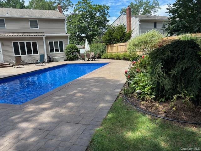Beautiful Colonial with Amazing Country Club Backyard! Four Bedrooms with Primary Suite, EIK Overlooking the In Ground Salt Water Pool with Brand New Liner 2025. Large Motorized Awning for Backyard Shade. Extraordinary Paver Patio resanded 2024! Gleaming Hardwood Floors, Large Family Room. Front Porch, Full Unfinished Basement with Laundry, Plenty of Storage and Utilities. Two Car Garage, Central Air, Central Vac, In Ground Sprinklers. New Wood Fencing, Impeccably Maintained by Original Owners. Smithtown Schools