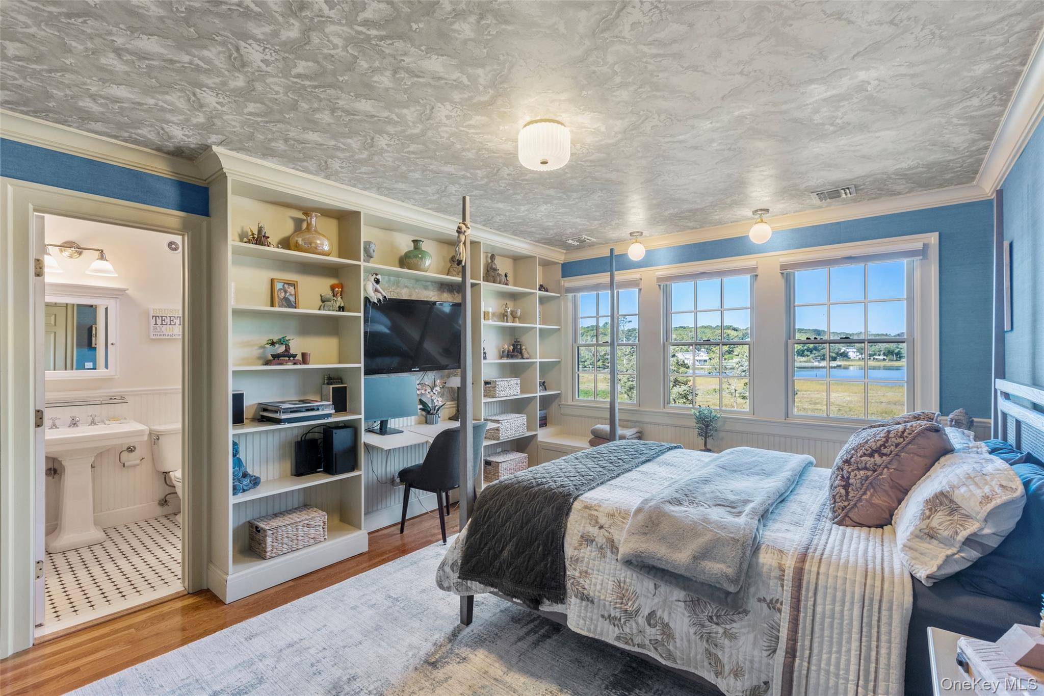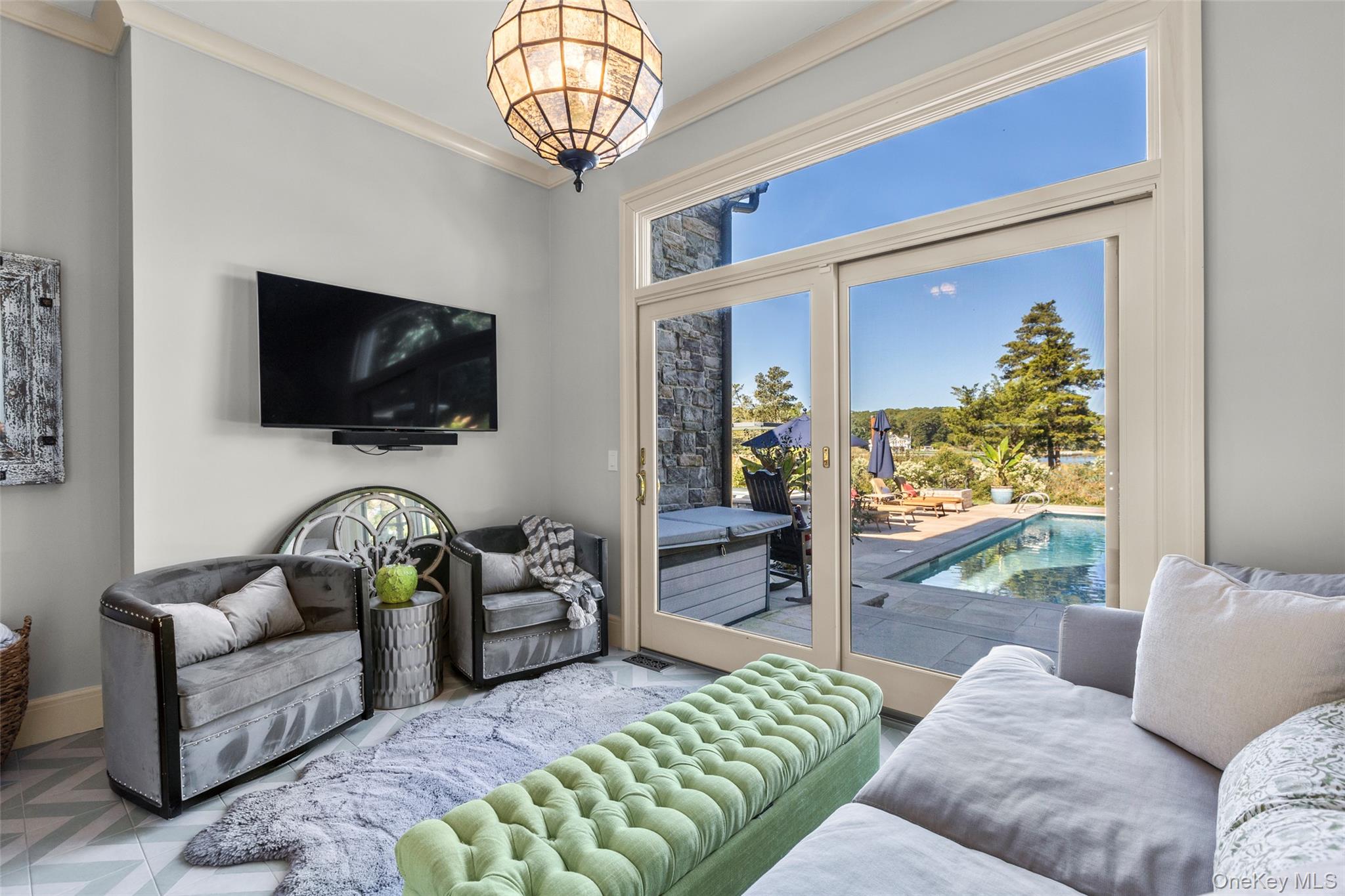 Welcome to Fran Chateau, a breathtaking modern French country waterfront estate on a private road that epitomizes luxury and tranquility along the shores of serene Conscience Bay. This stunning property has it all offering unrivaled water views with a beautifully crafted wetlands dock that leads you to the heart of the bay’s calm waters—ideal for boating, kayaking, swimming or just savoring the coastal splendor. The chateau blends timeless elegance with modern indulgence, featuring smart home technology, geothermal hvac, expansive french doors and windows showcasing the panoramic vistas, custom woodwork, open-concept vaulted living spaces, topped with an exquisite entrance and high-end finishes.Step outside to your own serene and secluded nature preserve, enjoy spa like living complete with an inground heated gunite pool, year-round enjoyment with bubbling hot 12’ swim spa, an infrared/steam sauna for ultimate relaxation, and a rejuvenating cold plunge pool for wellness enthusiasts, set within meticulously landscaped and lighted grounds. The limestone patios, outdoor kitchen, 8’ outdoor gas firepit all provide an unparalleled entertaining experience under the stars. The Chateau offers a lifestyle of sophistication, serenity, comfort, and nature and beauty, perfectly positioned at the epicenter of historical Old Field.