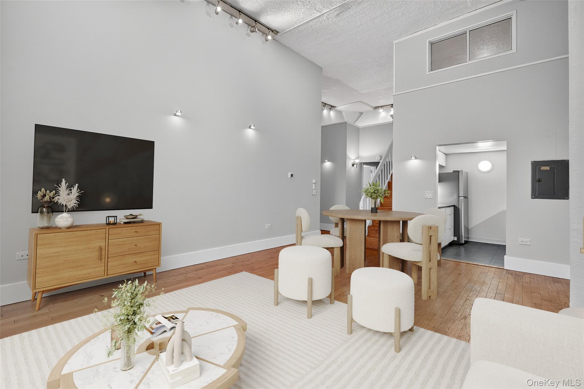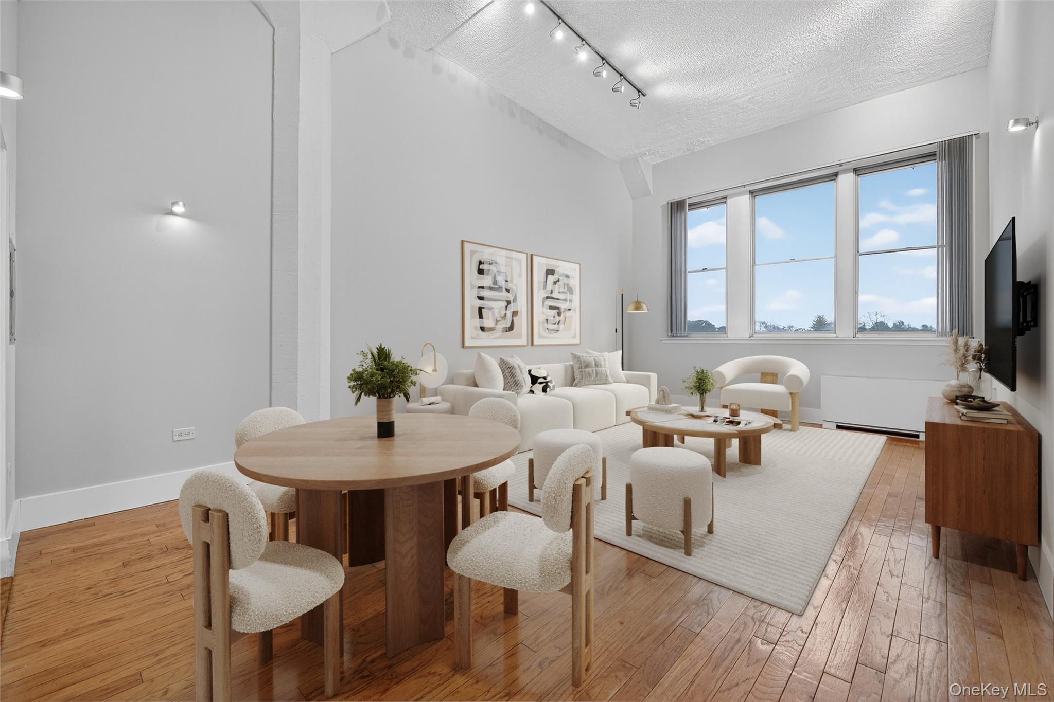 Welcome to The Landmark — Port Chester’s most iconic residence, once known as the historic Lifesaver Building. This rare duplex loft blends industrial charm and modern luxury. Unit #530 is a 1-bedroom that lives like a 2-bedroom with over 1, 000 sq. ft. of bright, open space, a must see to believe. Located on the top floor of the east-facing side, enjoy peace and privacy with no one above you. The main level features soaring ceilings, oversized windows, and a renovated kitchen with Samsung stainless steel appliances and quartz countertops. The updated bathroom and walk-in closet offer modern comfort and storage. Upstairs, the full-height loft (7-ft ceilings) includes two flexible spaces perfect for a den, office, studio, or guest area. Additional highlights include a deeded covered parking space (#78), paid-in-full $10K assessment, and a fully-covered HVAC service contract for the year. Amenities include a newly renovated fitness center, concierge, doorman, and rooftop pool—steps from restaurants, shops, the Capitol Theatre, marina, and train.
