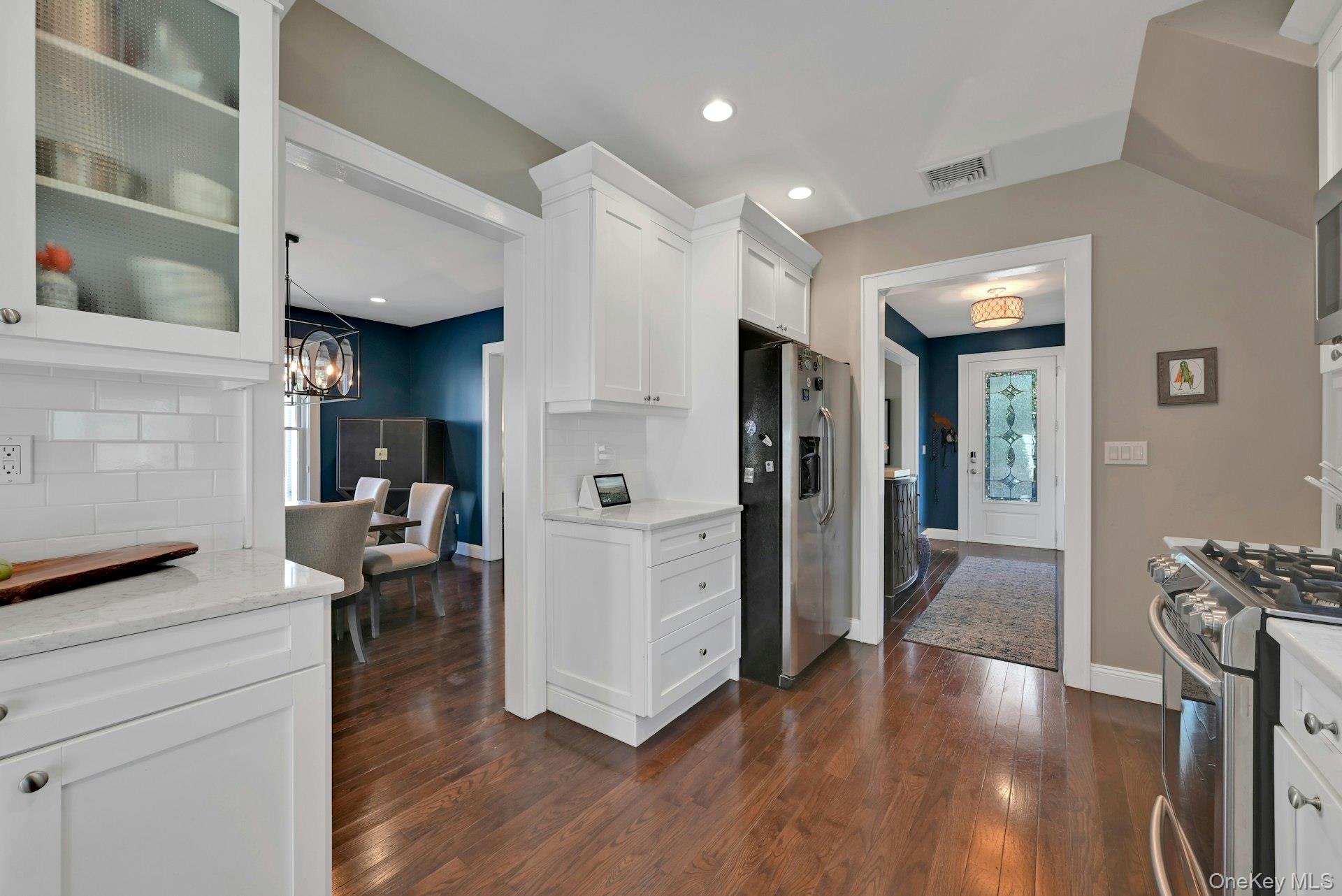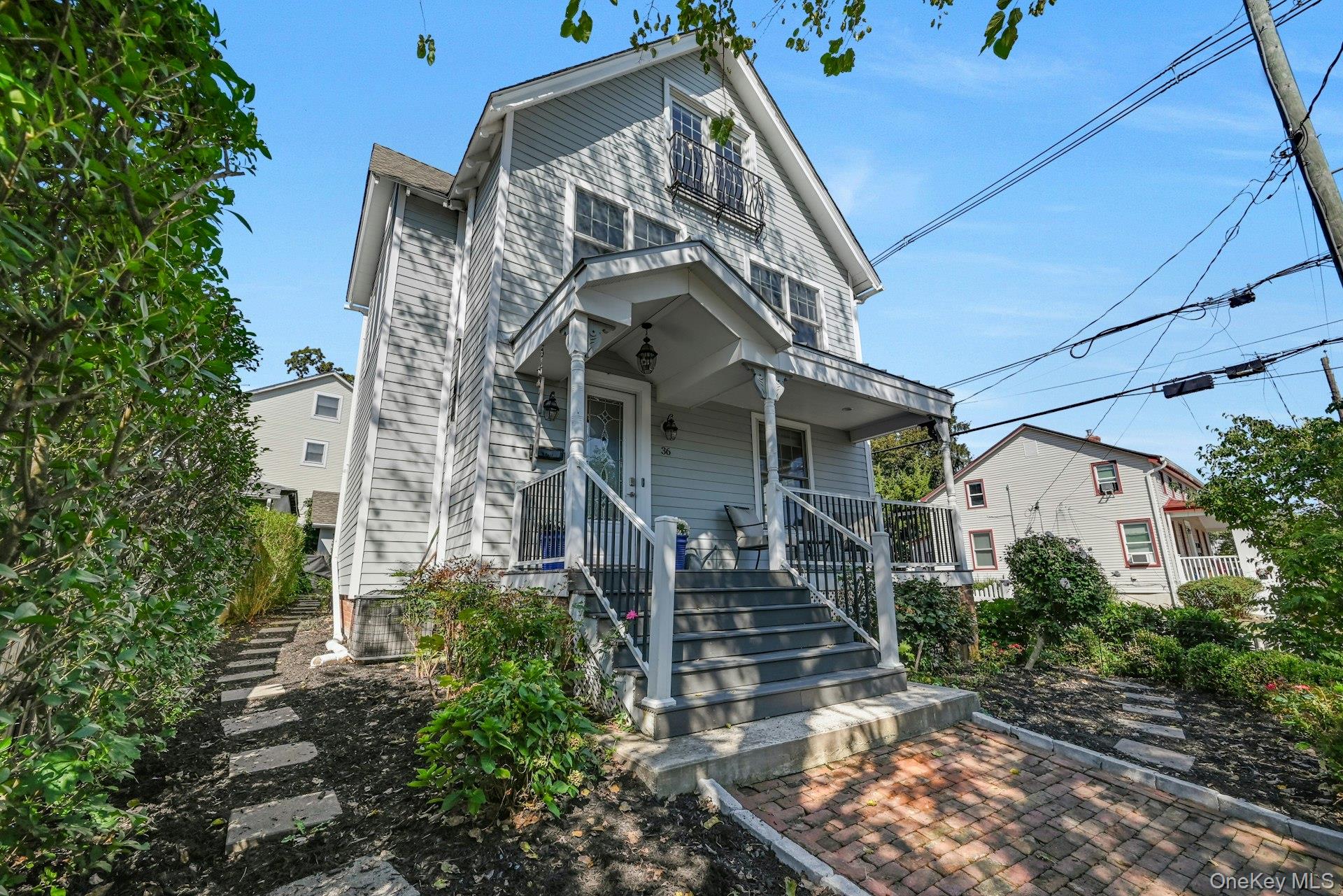Presenting 36 Summit in SoMa neighborhood of the Village of Nyack. This beautifully restored Vintage Colonial; perfectly combines timeless charm with modern comforts for today’s discerning homeowner.Spanning over 2, 800 square feet, this 3-bedroom, 2.5-bath home is a showcase of classic style and thoughtful restoration. Original details have been lovingly preserved—such as the front door, now repurposed for the entry hall closet, and the elegant banister—while new wood floors and soaring 10-foot ceilings on the first floor bring a fresh sense of openness.The spacious living and dining rooms flow into a bright, modern kitchen featuring granite countertops and a cozy casual dining area. French doors open to a private brick patio crafted from reclaimed bricks from the original chimney, creating a warm and welcoming space for relaxing or entertaining. Outdoor living is a highlight here, whether you’re enjoying a quiet afternoon on the covered front porch or unwinding on the private 3rd floor deck. The finished attic offers a large bonus living space with river views, and French doors leading to a spacious deck.Situated in the heart of Nyack, this home is conveniently located close to vibrant shops, restaurants, and year-round cultural events. Additional amenities include a detached one-car garage and off-street parking space.