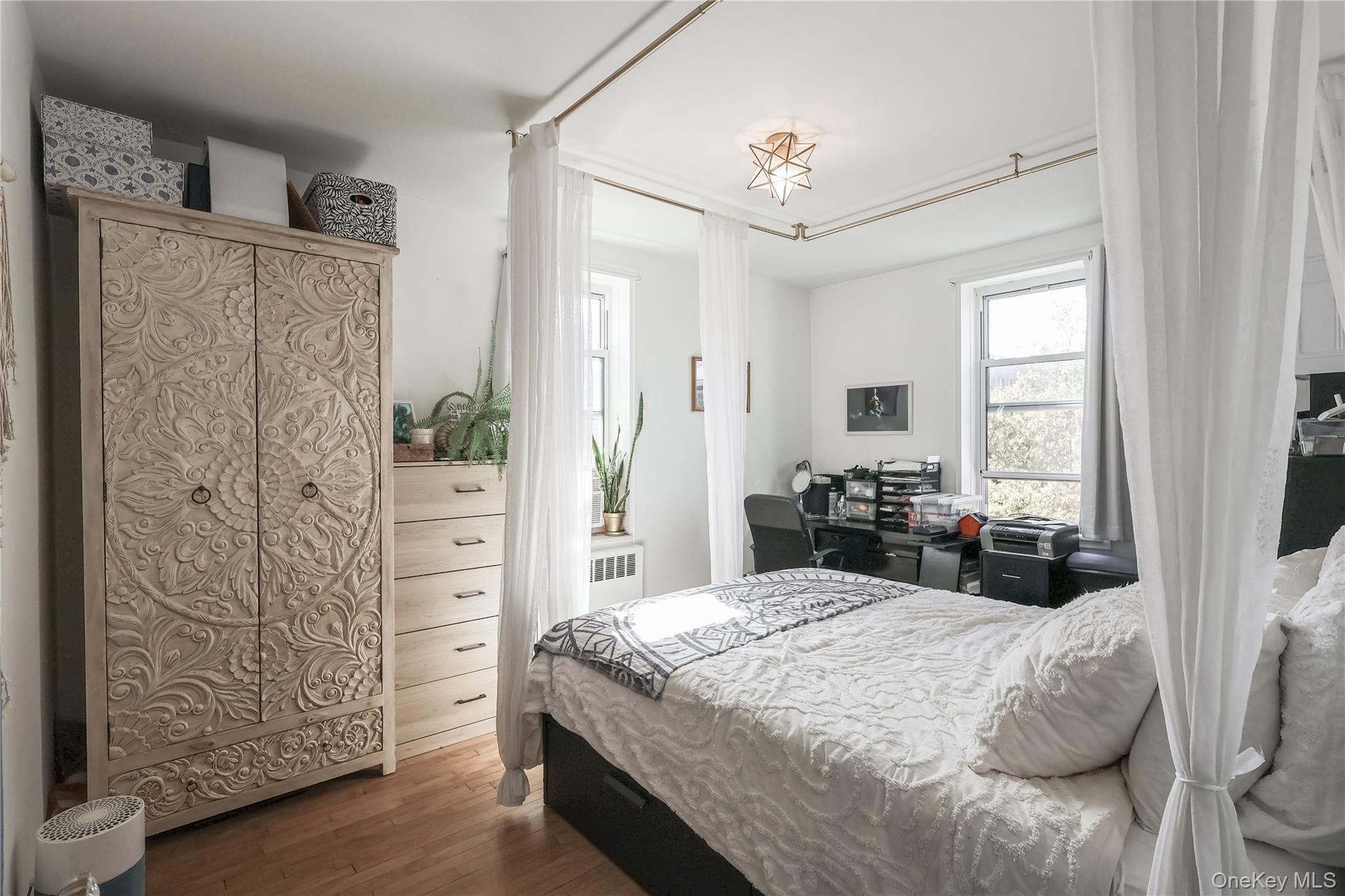 A Bright Corner One-Bedroom is hitting the Jackson Heights market! Sun-filled and spacious, this corner one-bedroom is located on a picturesque tree-lined avenue in Jackson Heights, Queens. With southern and western exposures, natural light pours into every room. The home features hardwood floors, a separate windowed kitchen, a bright corner bedroom, an airy bathroom, and abundant closet space.The pet-friendly building is surrounded by seasonal cherry blossoms and magnolia trees and offers a package room, bike storage, private storage cages, and an indoor parking garage (waitlist applies). Subletting permitted with board approval. Conveniently located near transit, shopping, and dining.