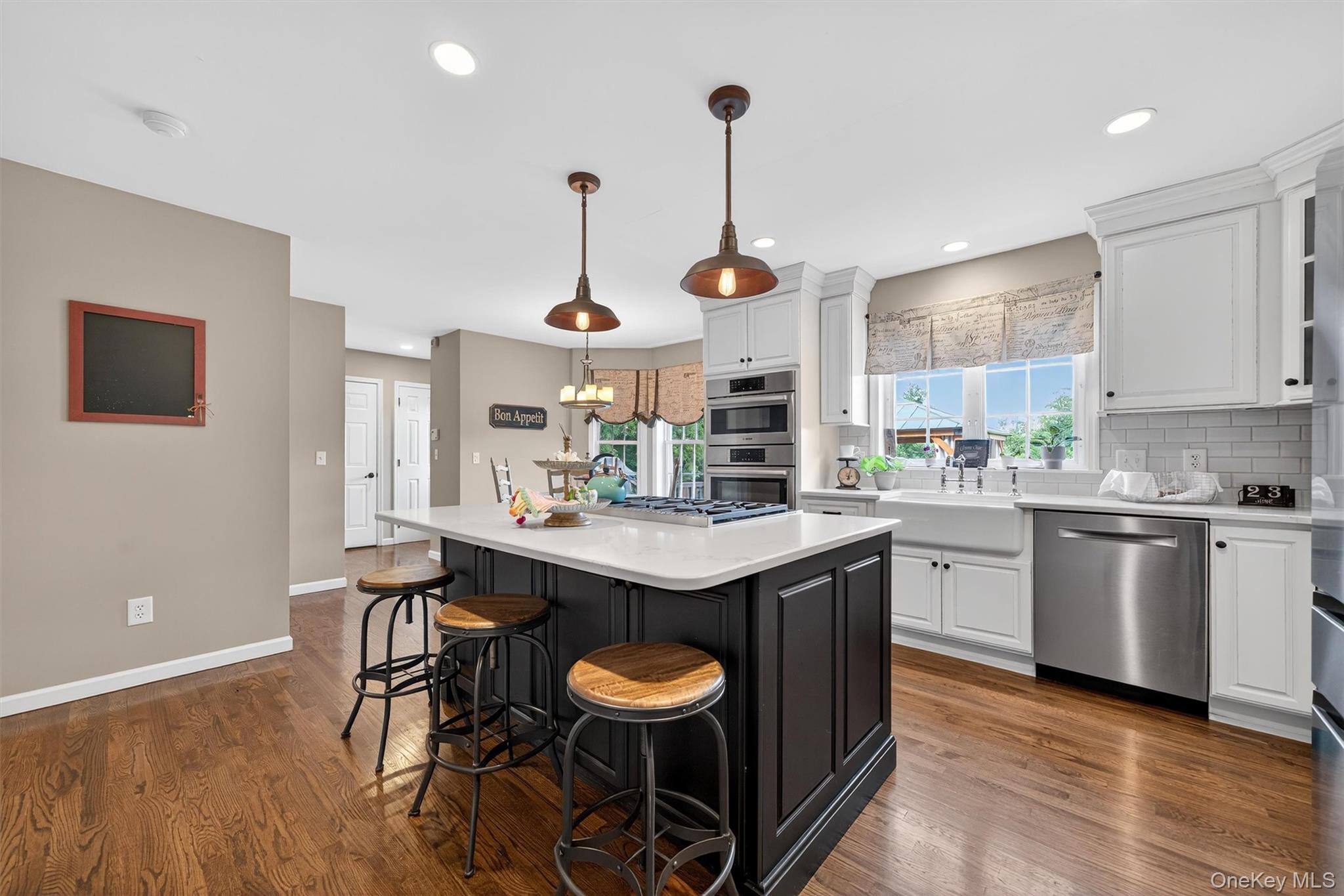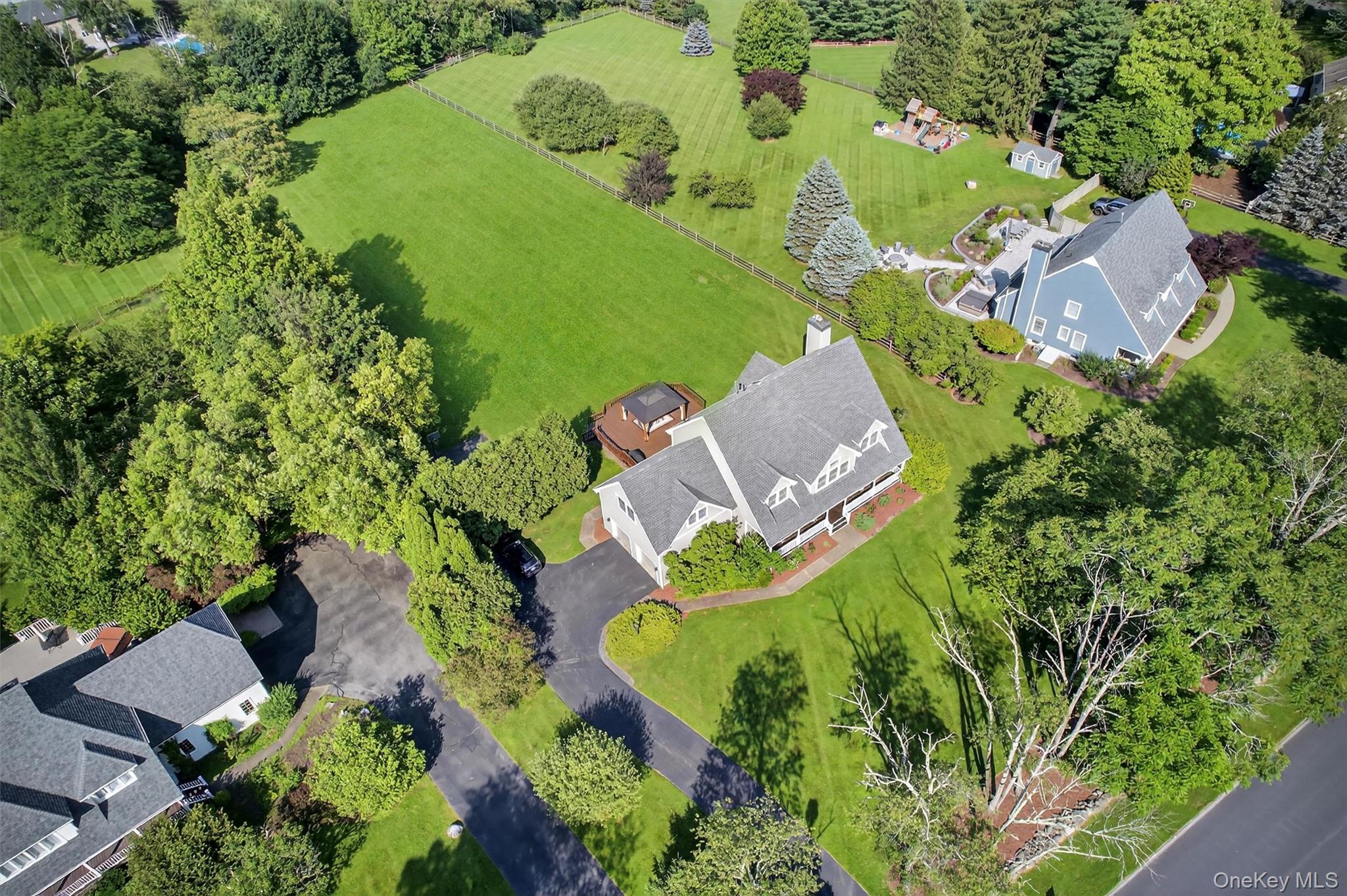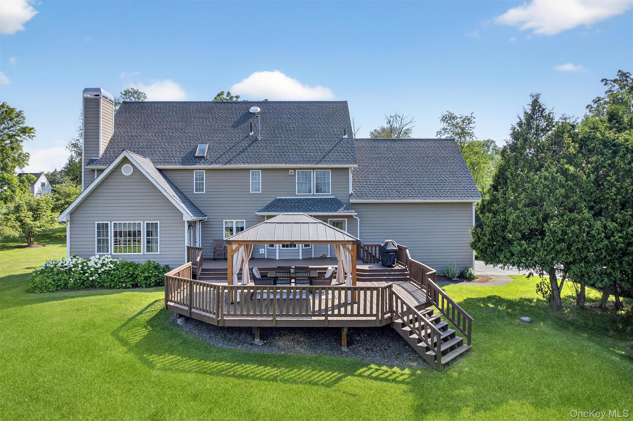 Welcome to your dream home in Horizon Farms—one of Warwick’s most desirable neighborhoods! This beautifully maintained 4-bedroom, 2.5-bath colonial is perfectly situated on nearly 2 picturesque acres, offering the ideal balance of privacy, space, and community living.From the moment you step inside, you’ll feel the warmth and comfort of a home that’s been lovingly cared for. To the left, a spacious formal dining room sets the stage for elegant dinners and special occasions. To the right, a beautifully furnished living room flows seamlessly into the expansive family room—complete with a cozy pellet stove and direct access to the large back deck, making indoor-outdoor living a breeze.The sun-filled eat-in kitchen is a chef’s delight, featuring updated high-end stainless steel appliances, including a Wolf range, Bosch wall oven and microwave, and a Samsung refrigerator (just 6 months old), all surrounded by ample cabinetry for storage and prep.Just off the mud area is a convenient powder room, offering thoughtful everyday functionality on the main level.Upstairs, the generous primary suite is a private retreat, boasting a large en suite bath and ample closet space. Three additional bedrooms share a well-appointed full bath, while a bonus home office provides the perfect work-from-home setup. The second-floor laundry room adds even more convenience.Step outside to enjoy the peace and privacy of your level 1.8-acre yard—ideal for gardening, play, or simply soaking up the surroundings. Entertain with ease on the expansive deck or explore the community’s exclusive amenities: a private pool with certified lifeguards, tennis and pickleball courts, a playground, and a clubhouse available for private events.Additional highlights include a two-car garage and a full basement offering abundant storage or potential finishing space. All of this just minutes from top-rated schools, local farms, scenic hiking trails, award-winning wineries, and the vibrant Village of Warwick with its charming shops, restaurants, and year-round events.Don’t miss the opportunity to make this exceptional home yours—schedule your private tour today!
