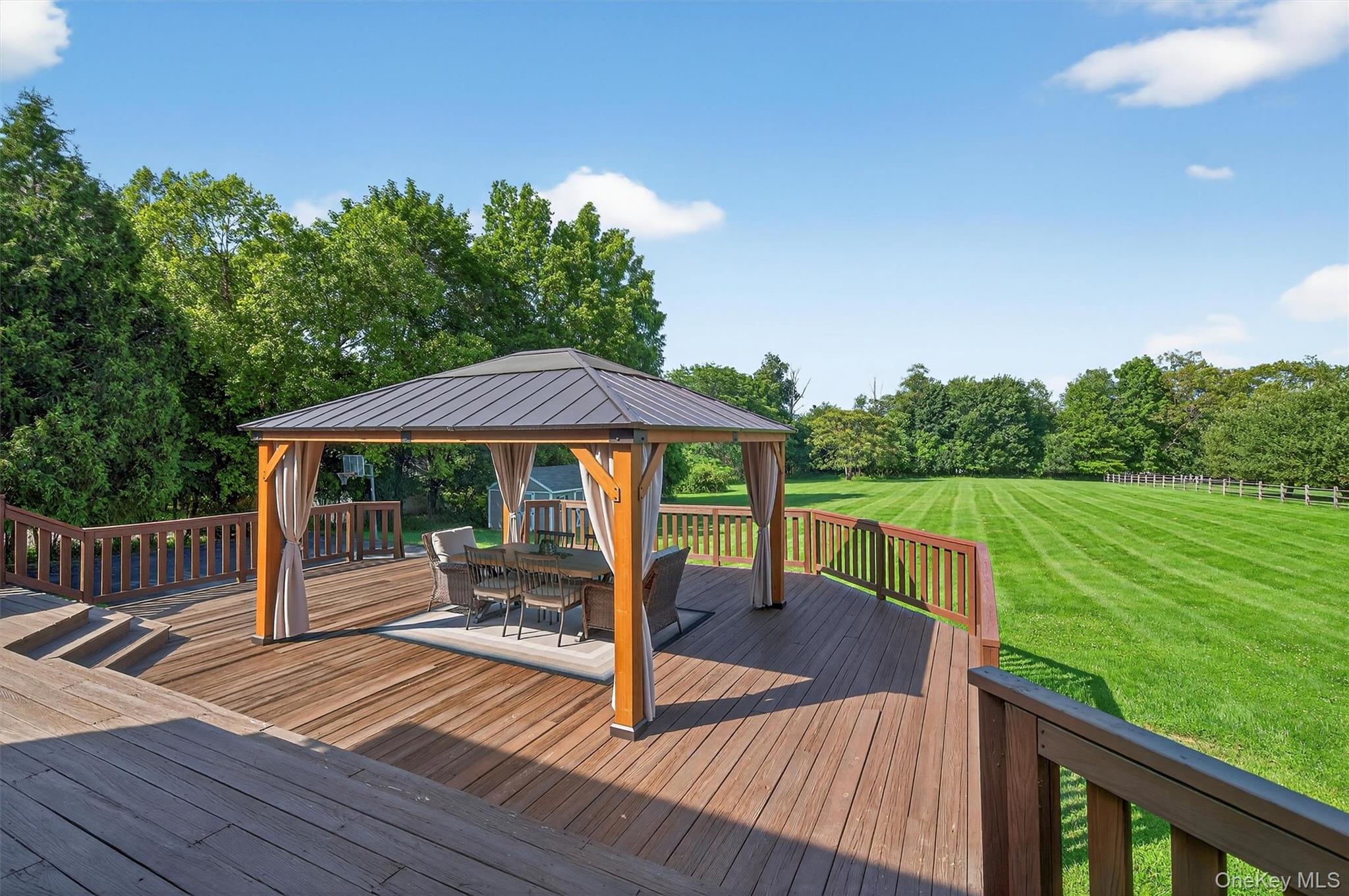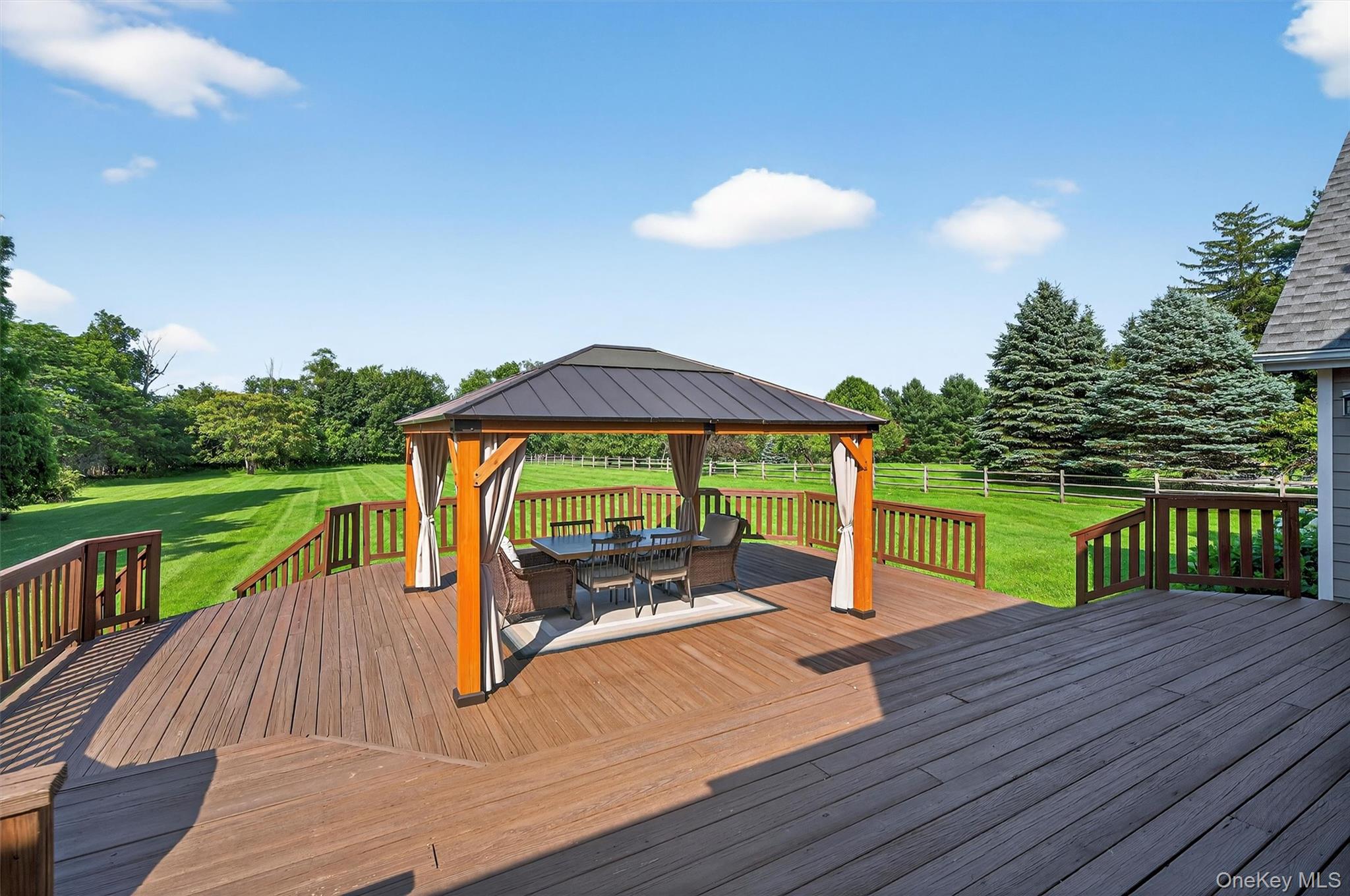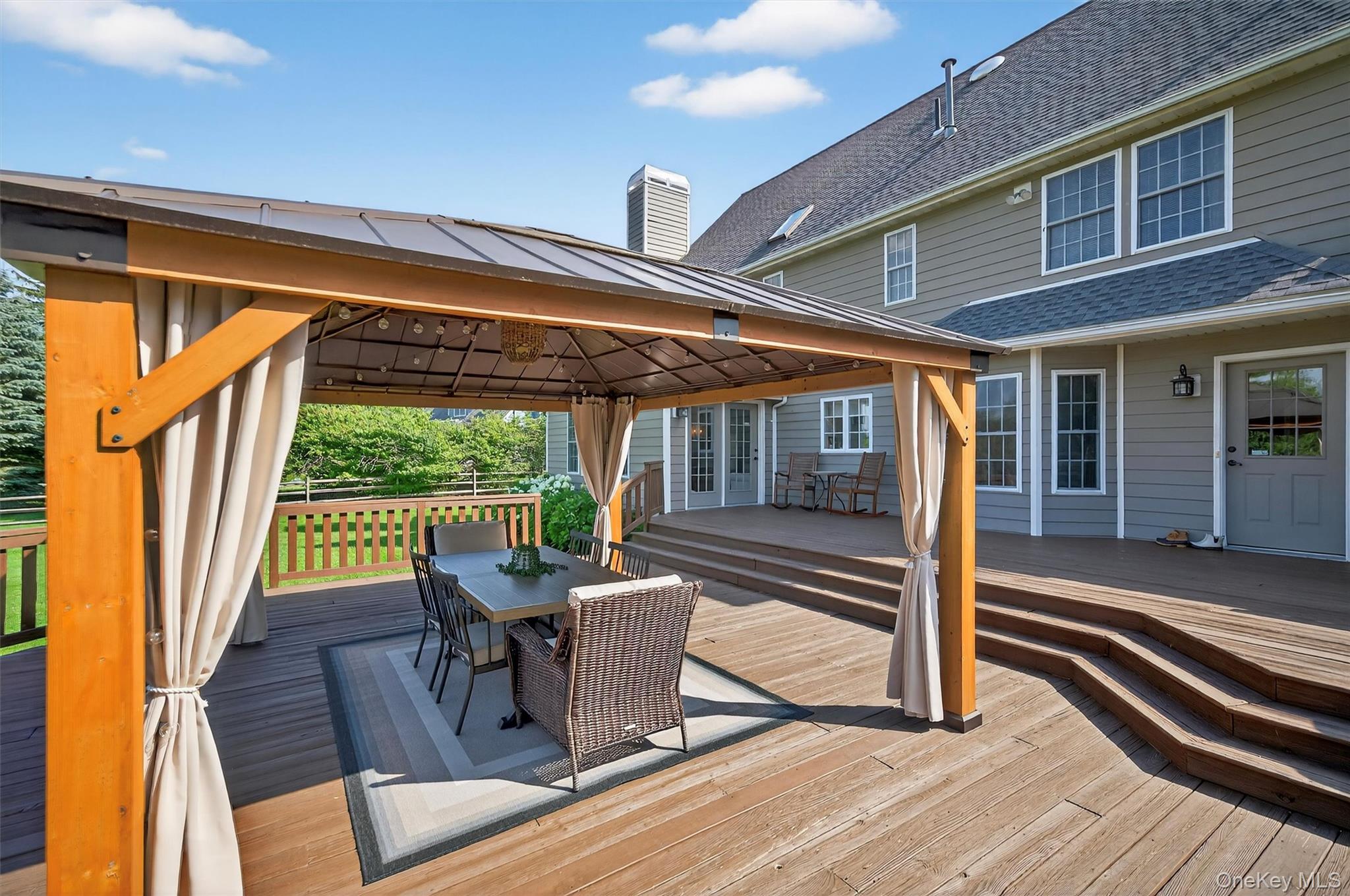 Welcome to your dream home in Horizon Farms—one of Warwick’s most desirable neighborhoods! This beautifully maintained 4-bedroom, 2.5-bath colonial is perfectly situated on nearly 2 picturesque acres, offering the ideal balance of privacy, space, and community living.From the moment you step inside, you’ll feel the warmth and comfort of a home that’s been lovingly cared for. To the left, a spacious formal dining room sets the stage for elegant dinners and special occasions. To the right, a beautifully furnished living room flows seamlessly into the expansive family room—complete with a cozy pellet stove and direct access to the large back deck, making indoor-outdoor living a breeze.The sun-filled eat-in kitchen is a chef’s delight, featuring updated high-end stainless steel appliances, including a Wolf range, Bosch wall oven and microwave, and a Samsung refrigerator (just 6 months old), all surrounded by ample cabinetry for storage and prep.Just off the mud area is a convenient powder room, offering thoughtful everyday functionality on the main level.Upstairs, the generous primary suite is a private retreat, boasting a large en suite bath and ample closet space. Three additional bedrooms share a well-appointed full bath, while a bonus home office provides the perfect work-from-home setup. The second-floor laundry room adds even more convenience.Step outside to enjoy the peace and privacy of your level 1.8-acre yard—ideal for gardening, play, or simply soaking up the surroundings. Entertain with ease on the expansive deck or explore the community’s exclusive amenities: a private pool with certified lifeguards, tennis and pickleball courts, a playground, and a clubhouse available for private events.Additional highlights include a two-car garage and a full basement offering abundant storage or potential finishing space. All of this just minutes from top-rated schools, local farms, scenic hiking trails, award-winning wineries, and the vibrant Village of Warwick with its charming shops, restaurants, and year-round events.Don’t miss the opportunity to make this exceptional home yours—schedule your private tour today!