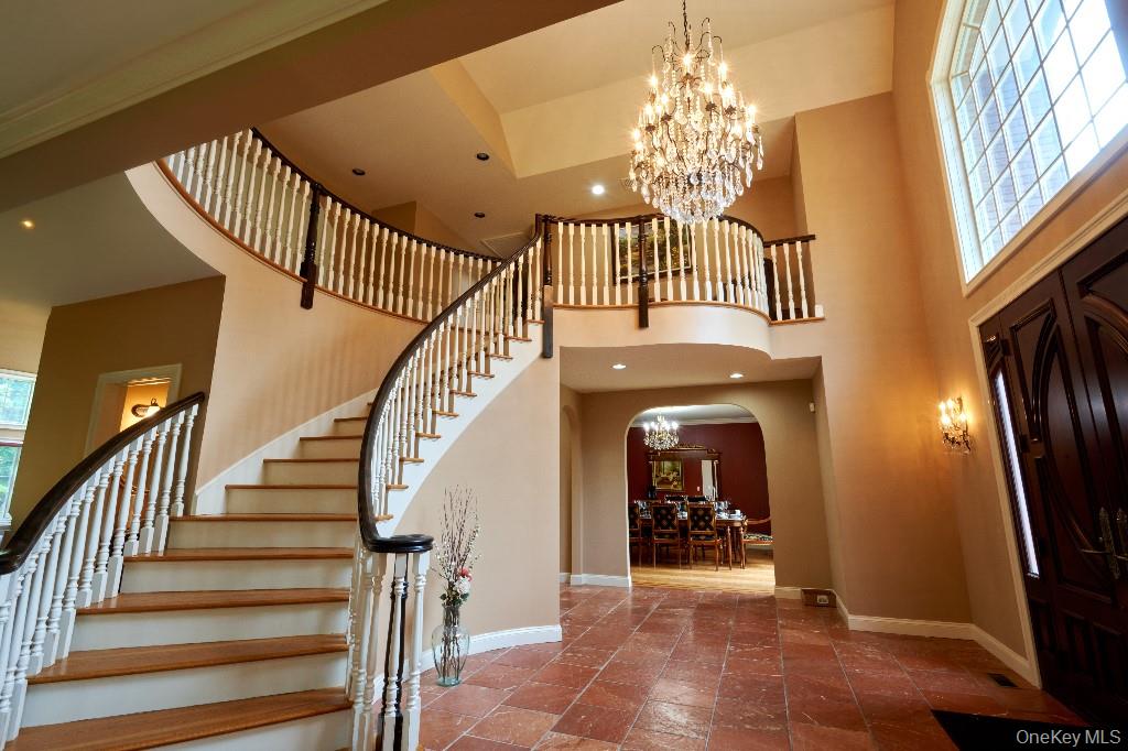 Custom designed 6, 897 sf all brick home in impecable conditions and located on private two acre with large, flat lawn areas, sports court, heated, salt water concrete in-ground pool, three car garage. Home offers sweeping staircase, 9 ft ceiling, classic style herringbone pattern oak floors with marble floors with inlay borders, rustic finished marble floors, crown moldings, panel doors, two fireplaces, 500 sf master bedroom with fireplace, large top of the-line kitchen with Sub-zero, Wolf appliances, granite and marble counters, central vacuum, two room office suite with separate entrance great for au pair or first floor bedroom with full bathroom.1800 sf finished basement with movie theater, full bath, brand new Bar, 100 bottle EURO CAVE 2 zone wine cooler, gym, commercial ice machine, crown molding, It won’t last!