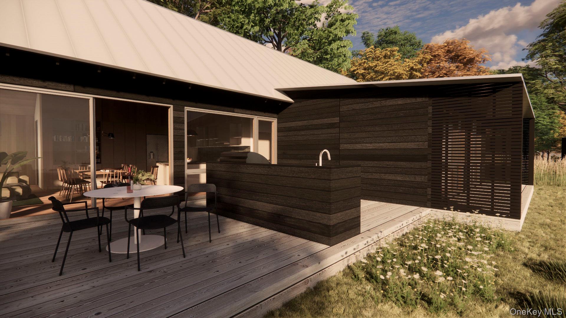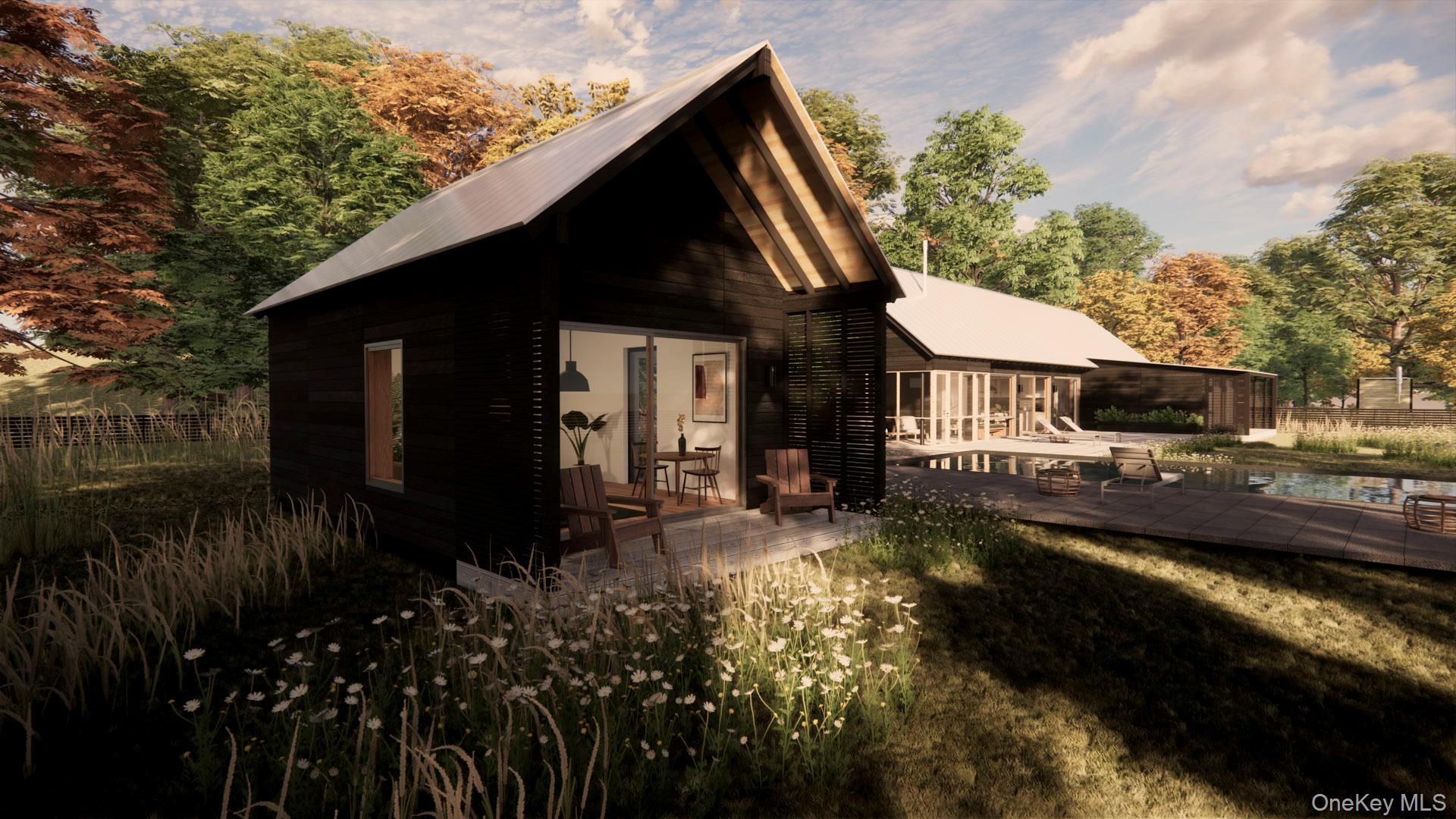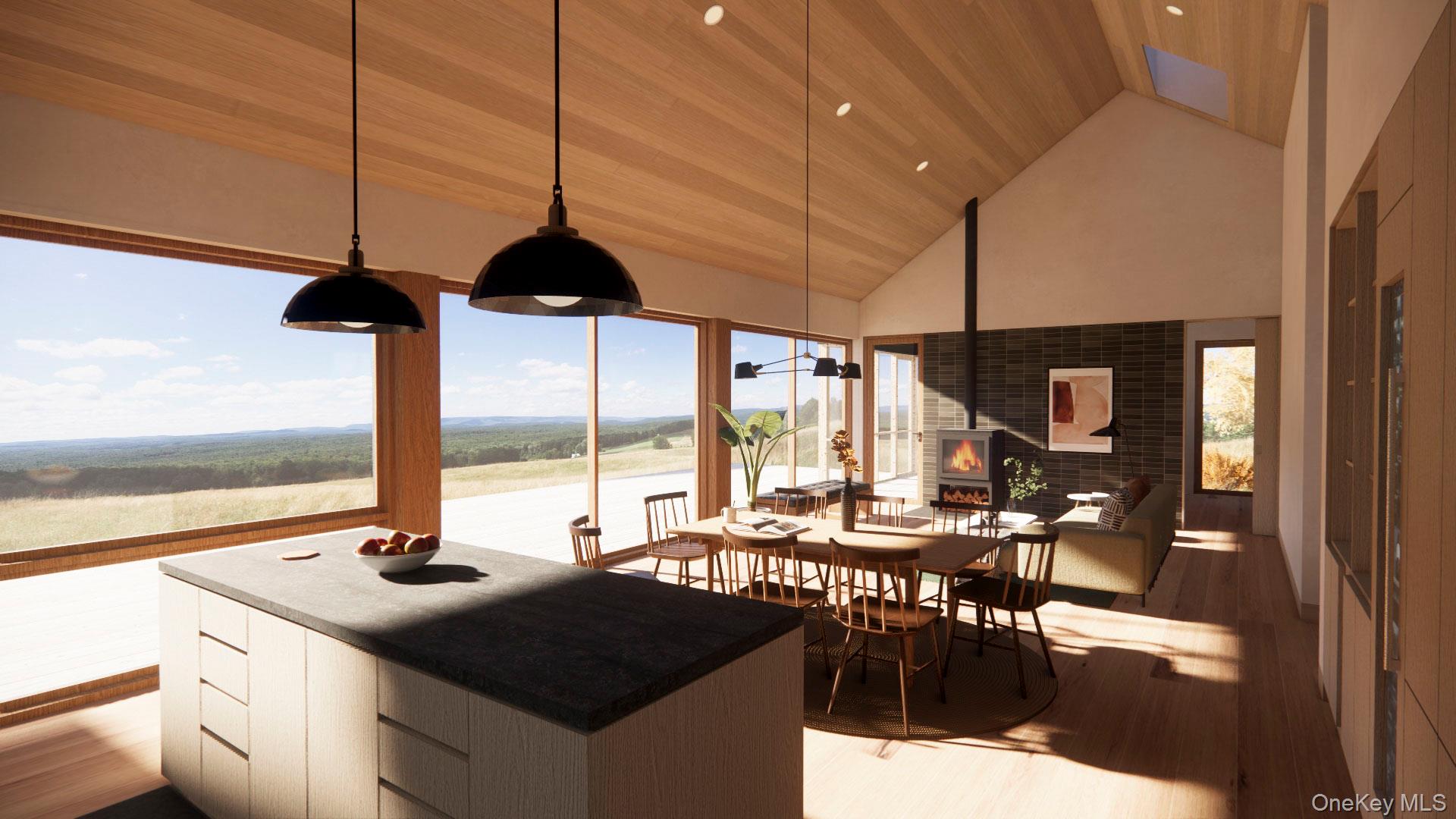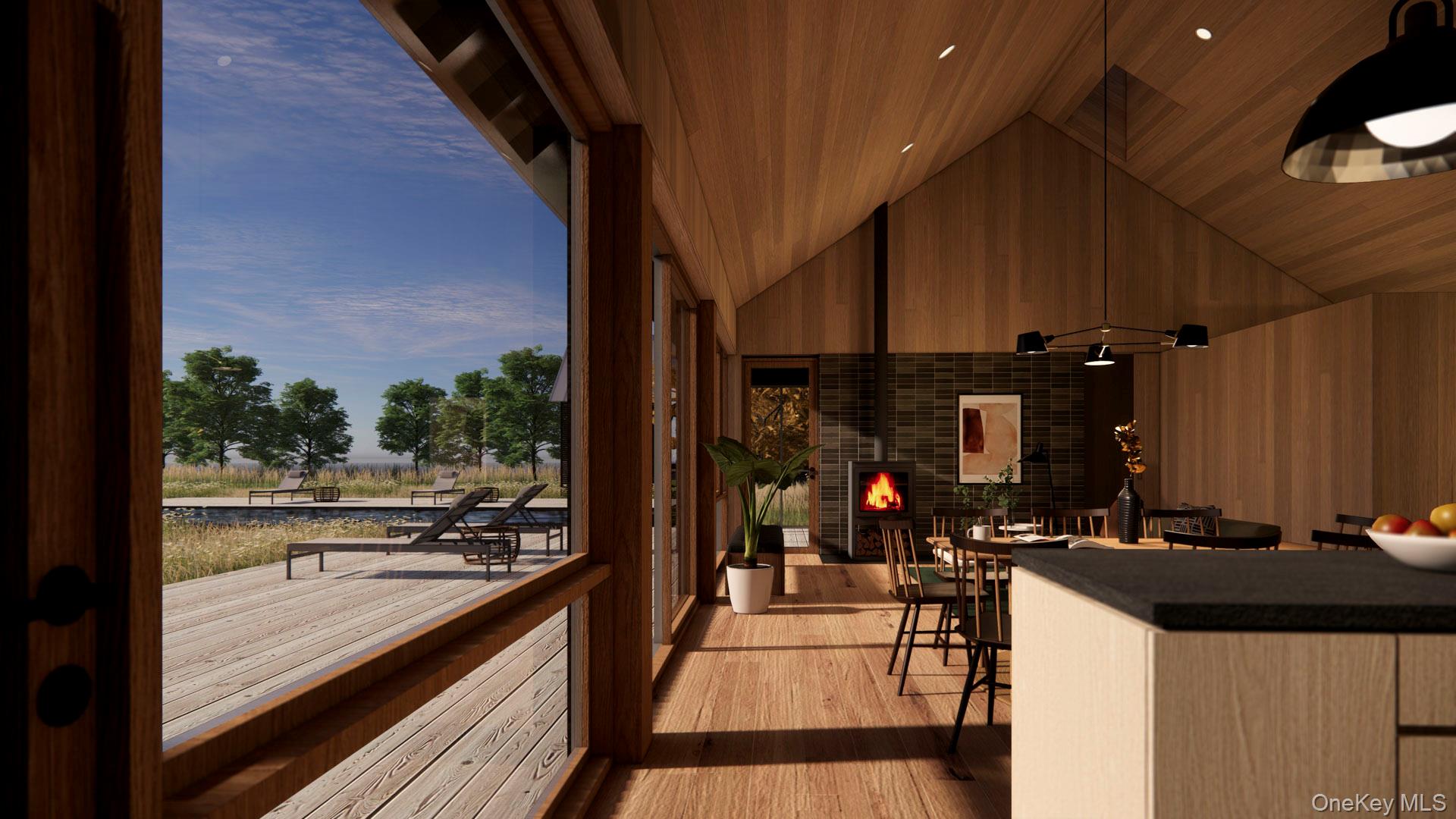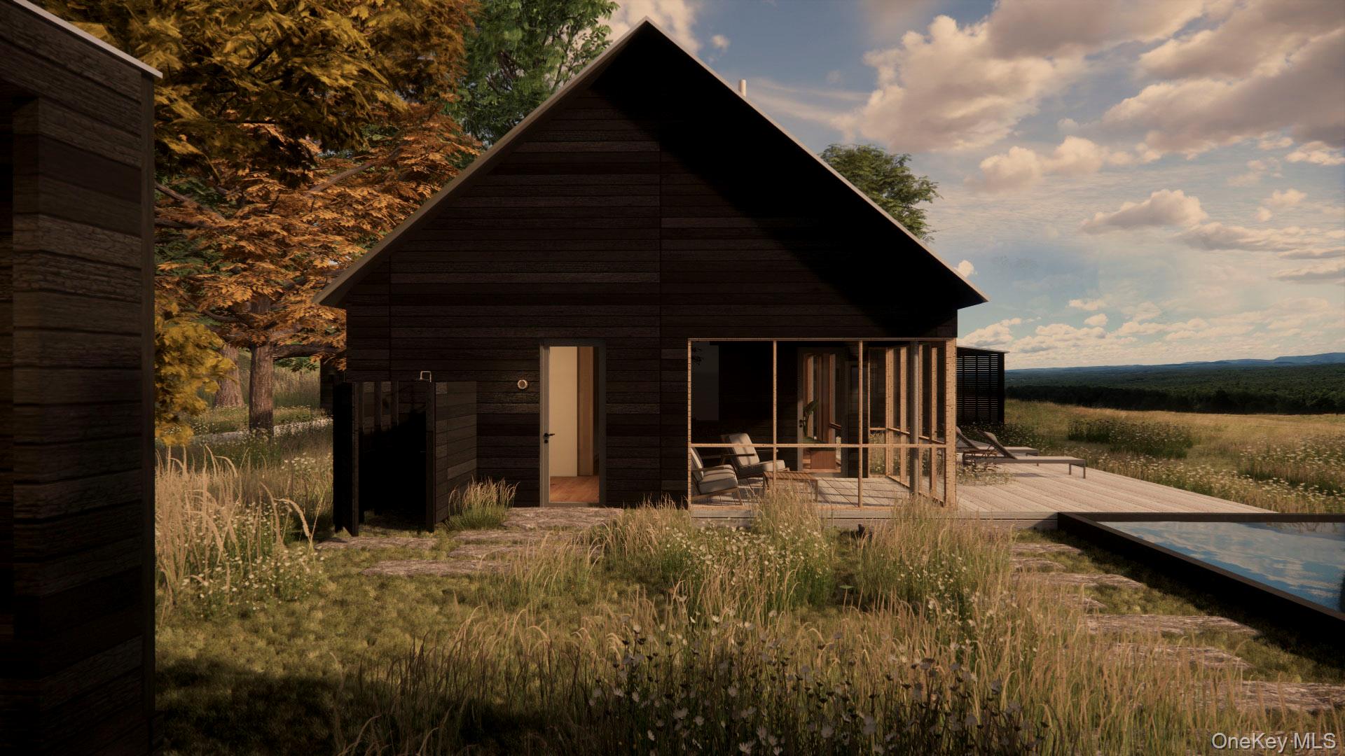 The Hudson is the epitome of rustic luxury and the most detailed and natural of South Hill’s models; a 2200 square foot home that is at once modern and germane to the traditions of the Hudson Valley. The rich and elegant tones of The Hudson’s dark facade are achieved through the ancient Japanese technique of Shou Sugi Ban in which wood is charred to enhance its longevity, pest-resilience, and create drama and texture without the addition of stains or paints. Inside, rich wood floors, ceilings, and select accent walls create warmth and a connection to the surroundings. Built-in storage, expansive windows that bring the beauty of South Hill, and custom details set this model apart. The floor plan features an open Living/Dining/Kitchen space with soaring 17.5 ft ceilings. The large entry with closet and powder room is the perfect transition from the outside. Adjacent to the kitchen, two bedrooms lie off a corridor and across the hall from a full bath, laundry room, and a mechanical space. The main bedroom suite is at the opposite end of the home for privacy, and opens onto the landscape. The den/flex room has a screened porch. The Hudson includes decks, a storage attic, triple-pane insulated windows, a kitchen island, expanded kitchen storage, Fisher Paykel series 7 kitchen suite, wine refrigerator, built in millwork in the great room, an LG Ultra washer and dryer, Stuv wood burning stove, motorized skylights, matte black Kohler Purist plumbing fixtures, a high efficiency ducted heating and cooling system, and radiant heat floors